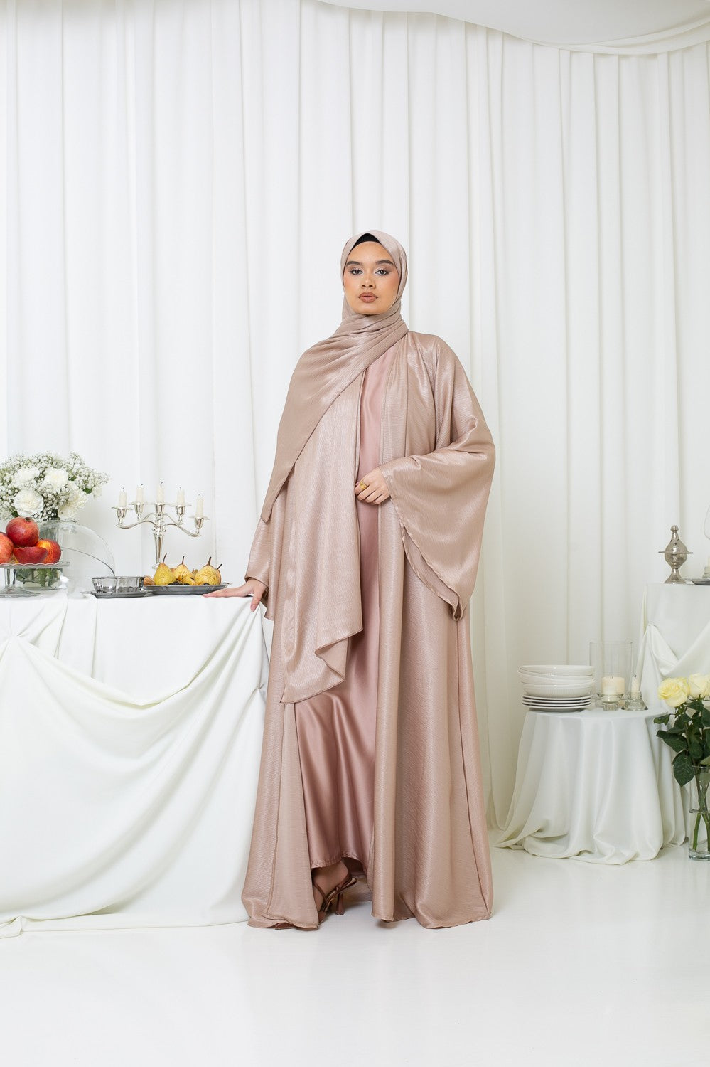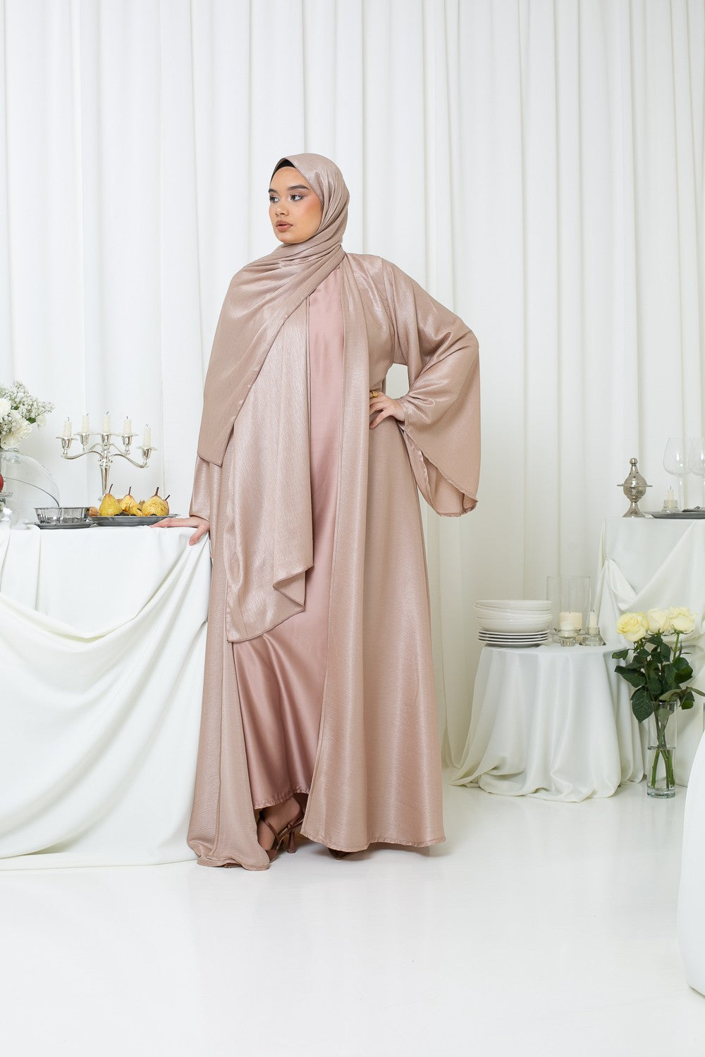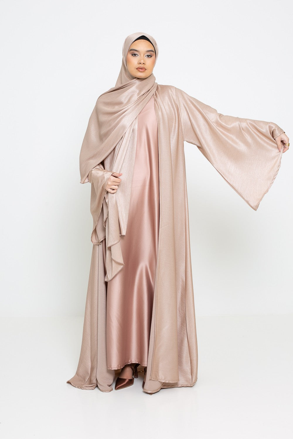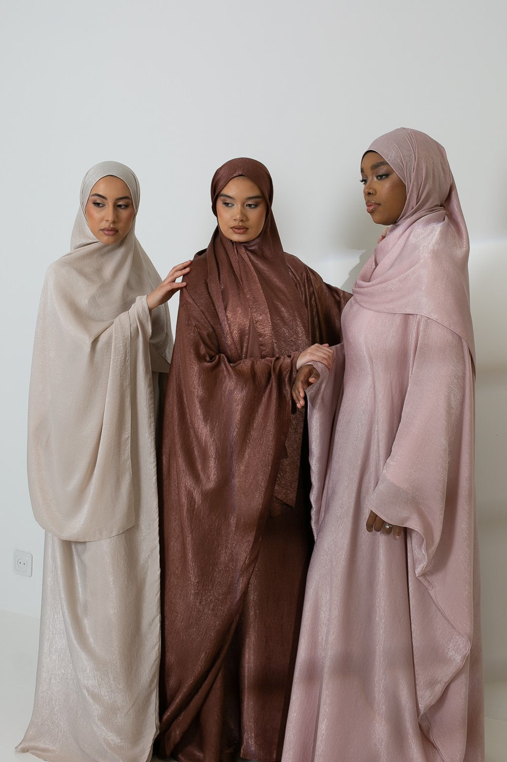 Le grand avantage des abayas de Dubaï c'est quelles sont vendus avec leurs hijab assortit ce qui facilite les choses. Mais vous pouvez très bien la porter avec un hijab soie de Médine qui apportera du cachet à votre tenue ainsi qu'un de nos hijabs de fêtes comme le satiné. Nous vous proposons également des robes sans manches qui sont très pratique pour mettre sous votre abaya.