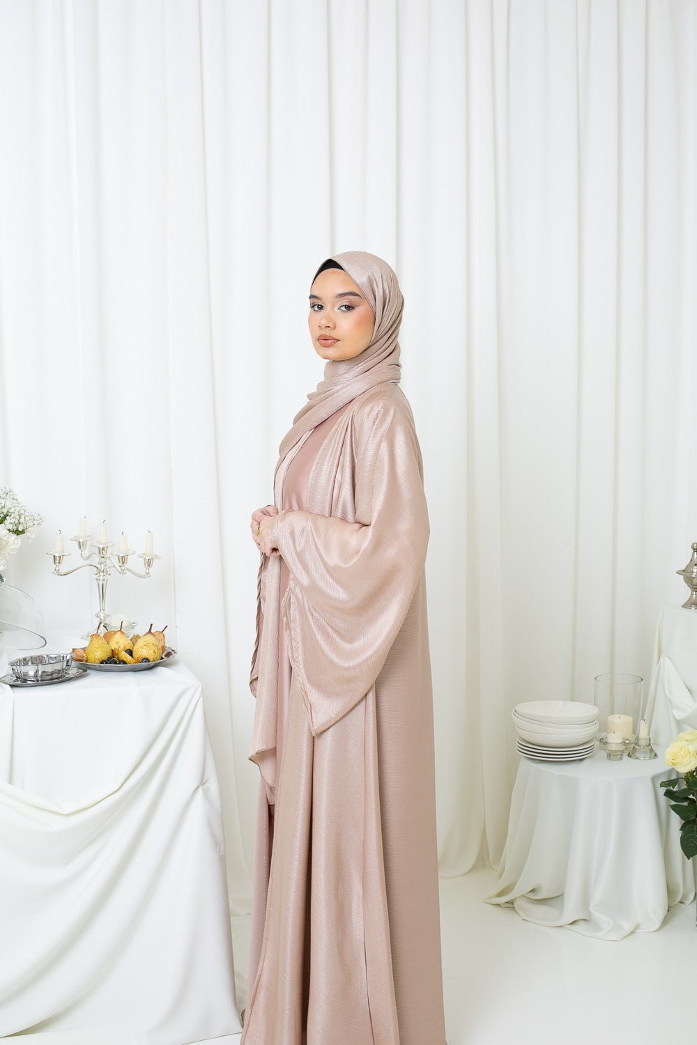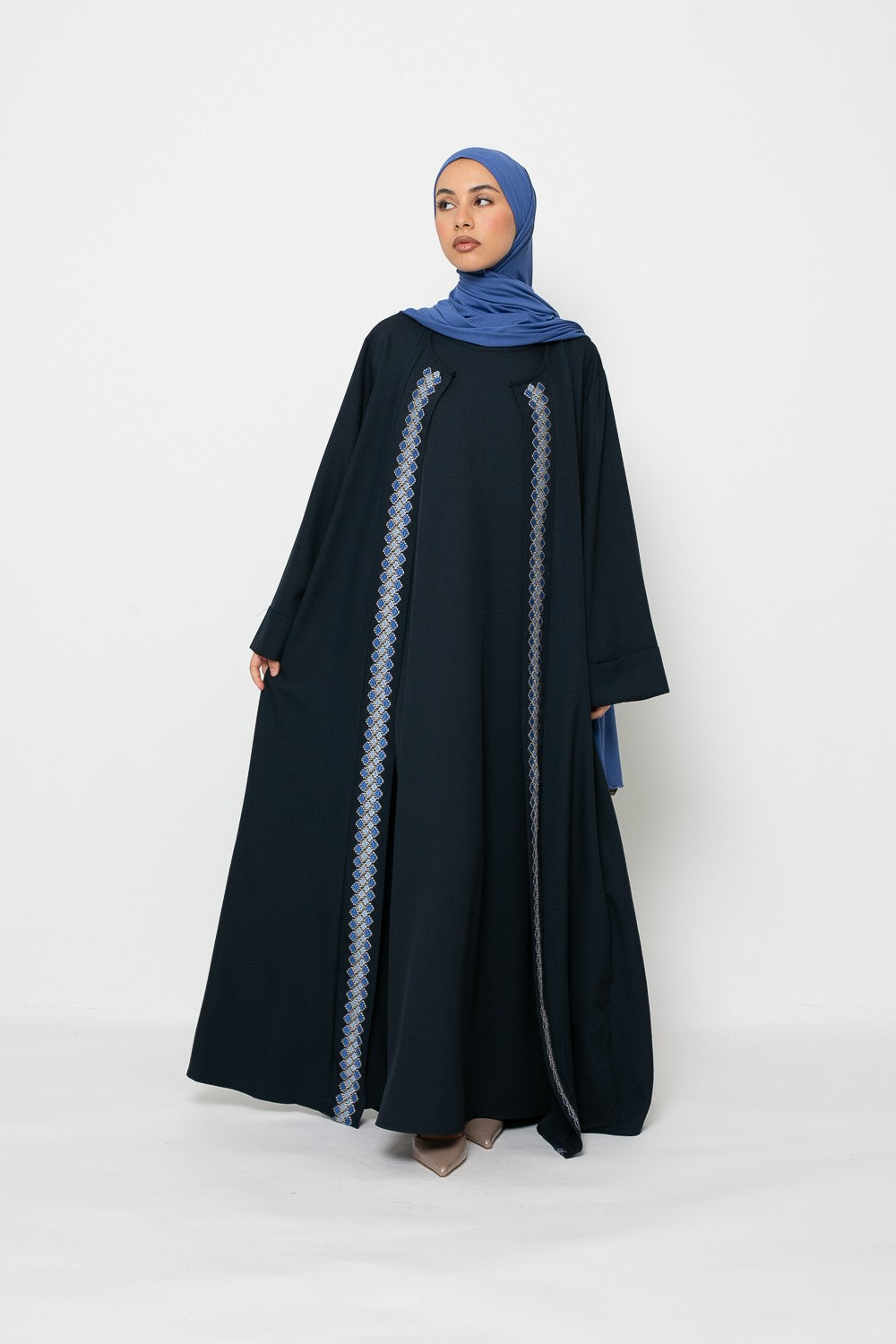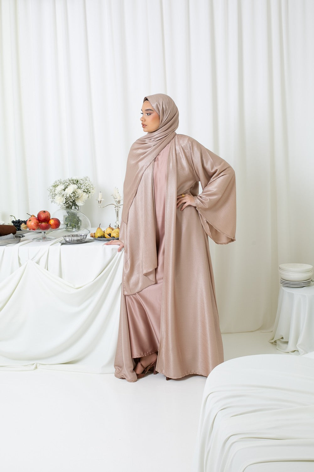 Le grand avantage des abayas de Dubaï c'est quelles sont vendus avec leurs hijab assortit ce qui facilite les choses. Mais vous pouvez très bien la porter avec un hijab soie de Médine qui apportera du cachet à votre tenue ainsi qu'un de nos hijabs de fêtes comme le satiné. Nous vous proposons également des robes sans manches qui sont très pratique pour mettre sous votre abaya.