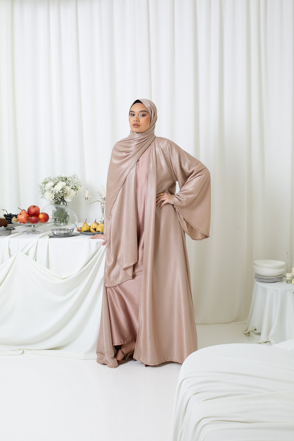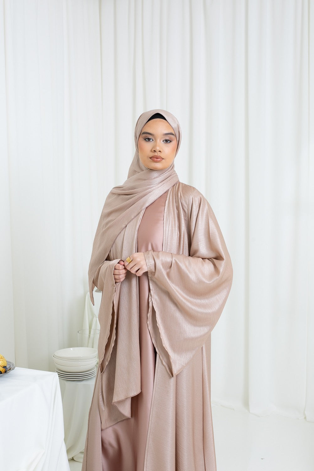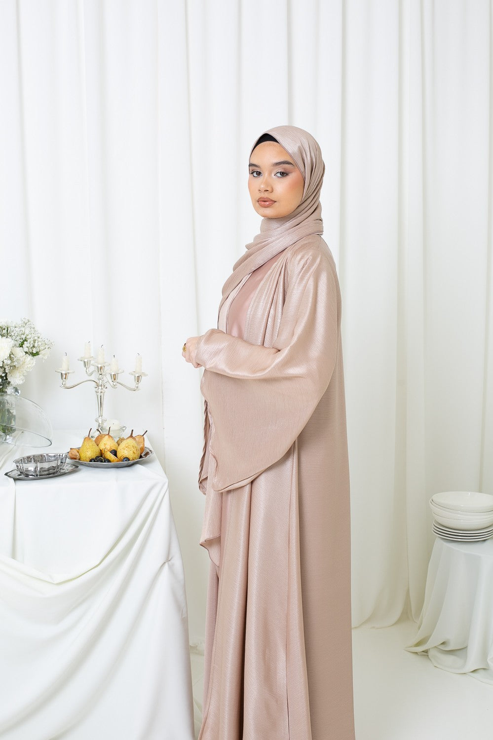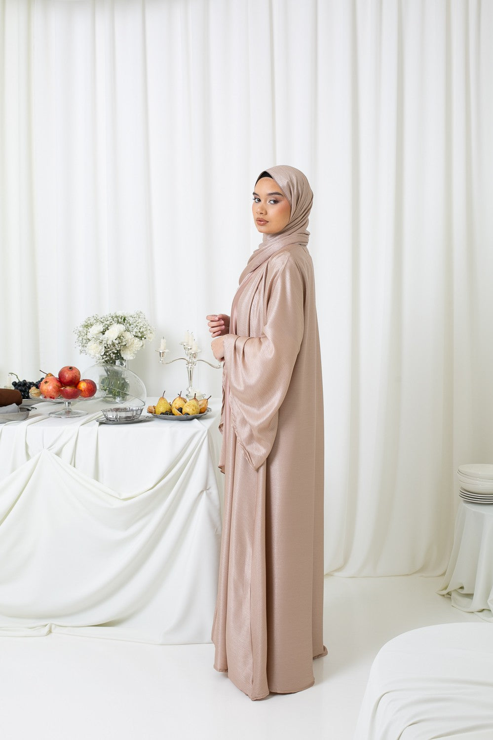 Le grand avantage des abayas de Dubaï c'est quelles sont vendus avec leurs hijab assortit ce qui facilite les choses. Mais vous pouvez très bien la porter avec un hijab soie de Médine qui apportera du cachet à votre tenue ainsi qu'un de nos hijabs de fêtes comme le satiné. Nous vous proposons également des robes sans manches qui sont très pratique pour mettre sous votre abaya.