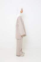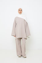 Pour un look ton sur ton nous vous proposons le haut ample coton taupe clair qui vous fera un très bel ensemble pour vos vacances et votre quotidien. Pour finaliser le hijab jersey lux soft prêt à nouer blanc cassé qui apporte une touche de fraîcheur.
