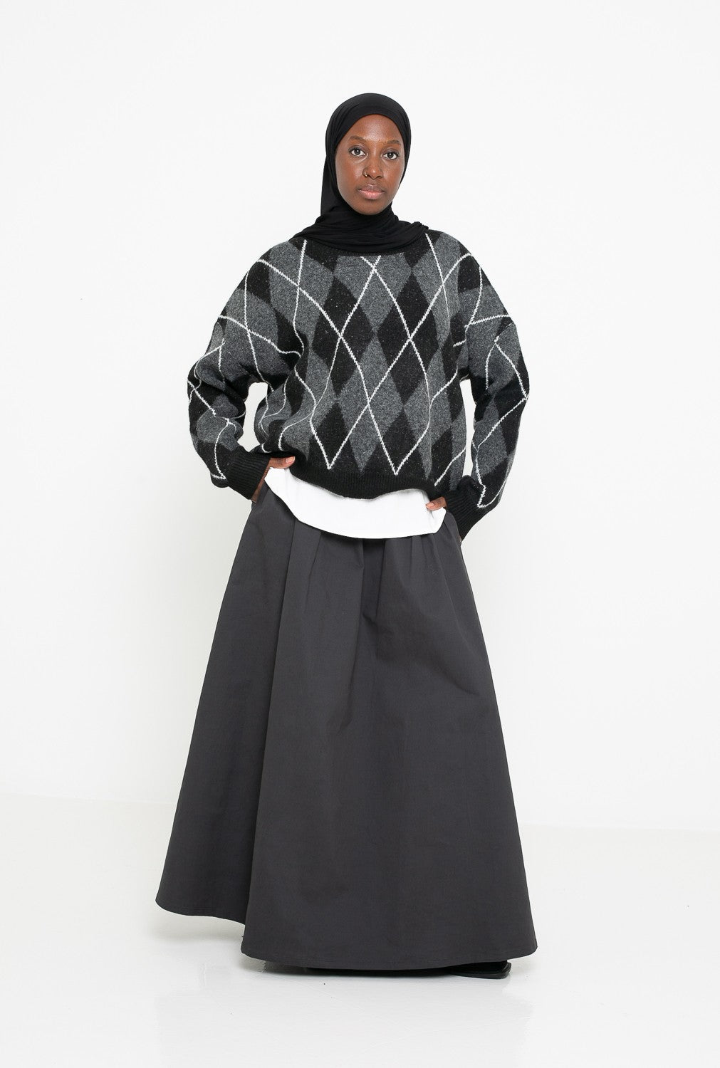 Polyvalente et intemporelle, elle s’accorde facilement avec une grande variété de hauts : chemises, top ou pulls. Elle se porte aussi bien avec des chaussures habillées pour une tenue élégante, qu’avec des baskets pour un style plus décontracté. Cette jupe incarne la philosophie modeste chic : élégance, confort et longévité.