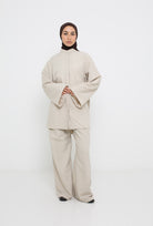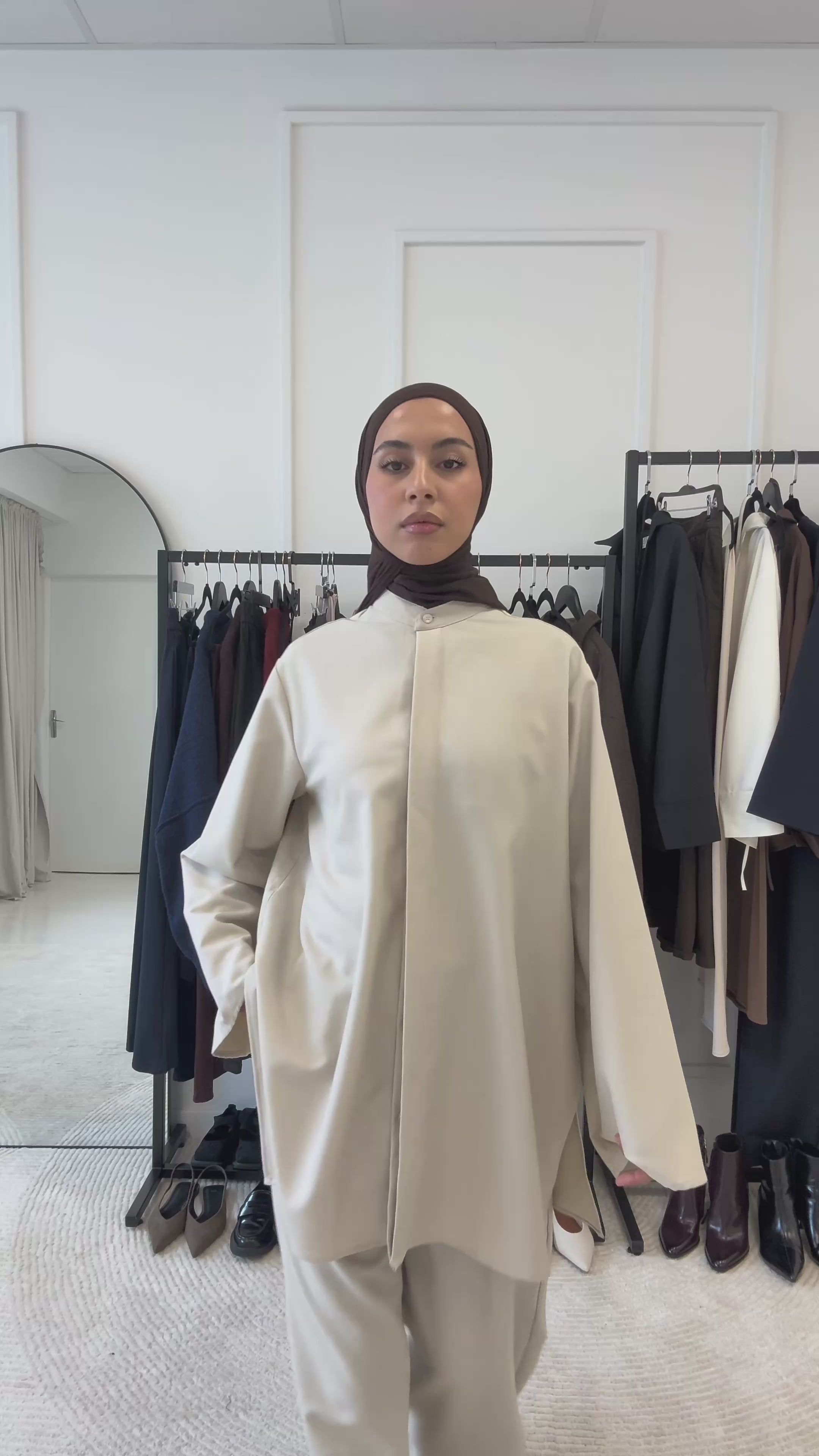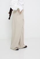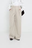 Le Pantalon à pinces Fall est un modèle droit et fluide au tissu effet tailleur chic. Sa taille élastique à l'arrière, son zip à crochet et ses plis structurés sur le devant lui donnent une allure élégante et confortable, parfaite pour un style moderne et raffiné.