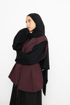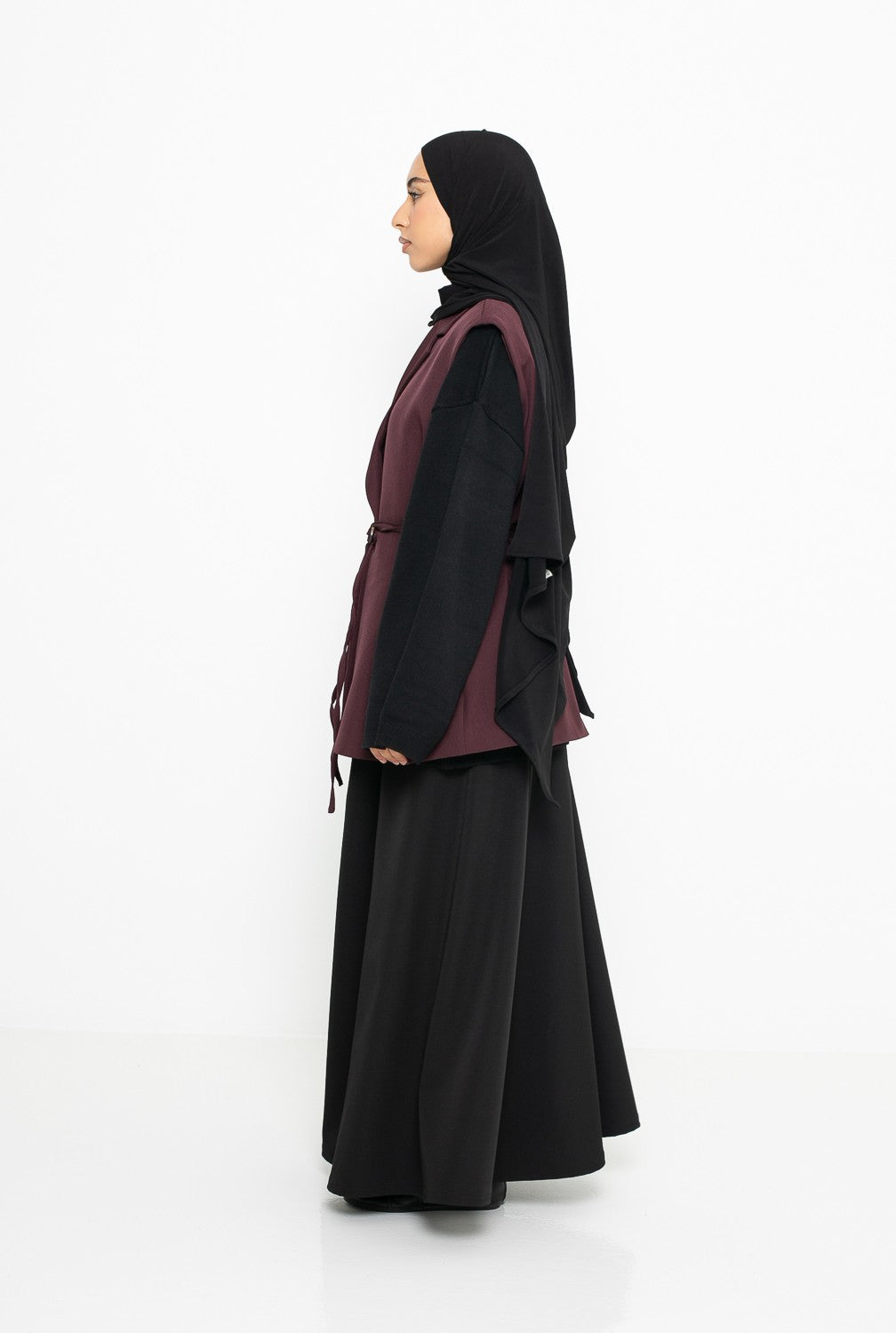 Nous l'avons porté avec la jupe Paris city noir, le gilet minimaliste noir, le hijab jersey premium noir et une paire de chaussure noir.