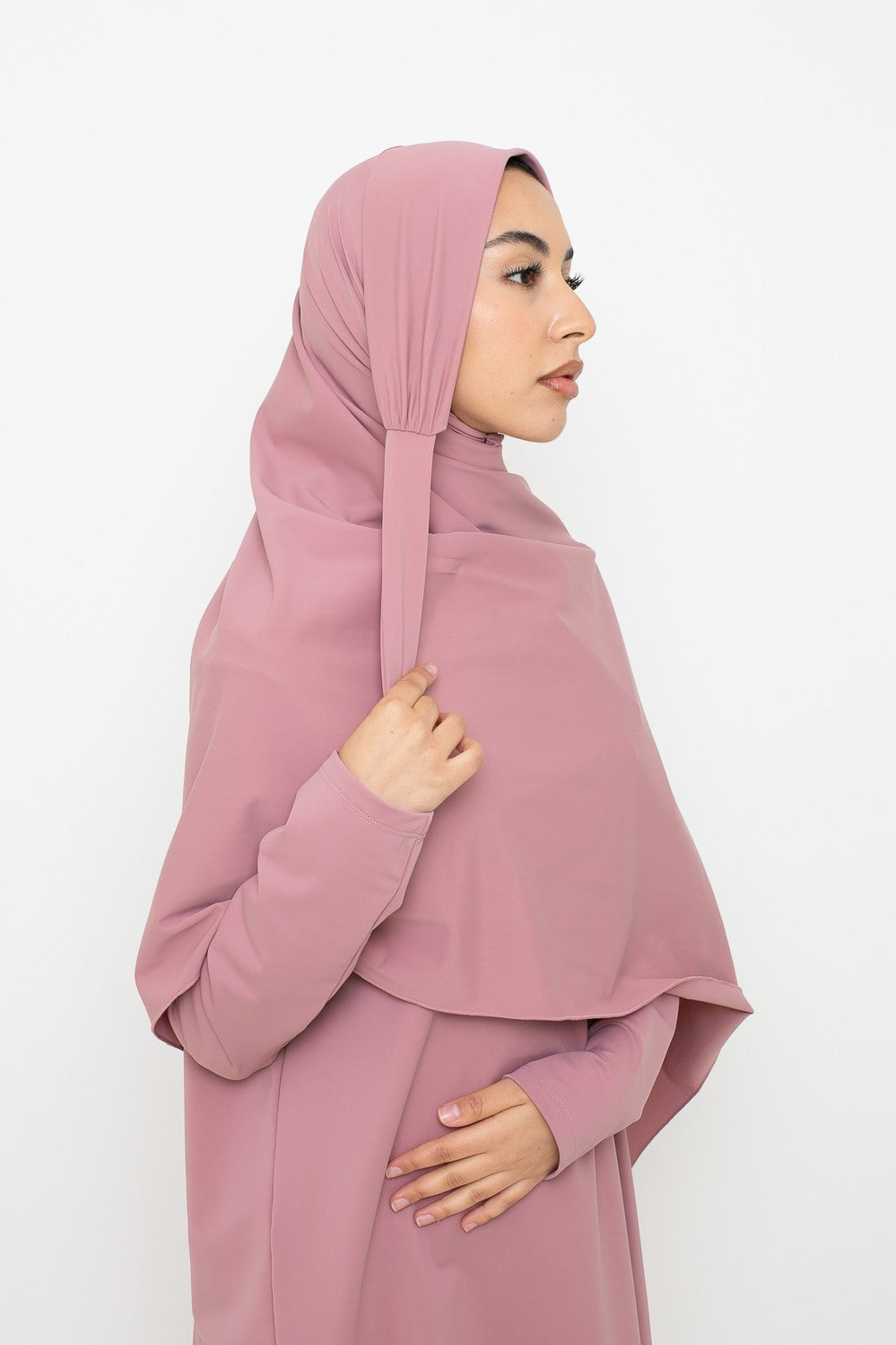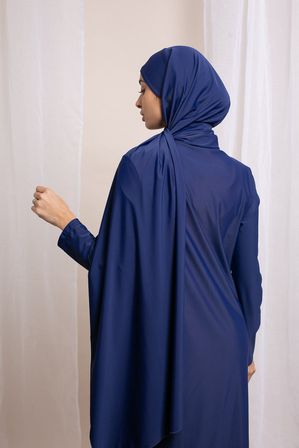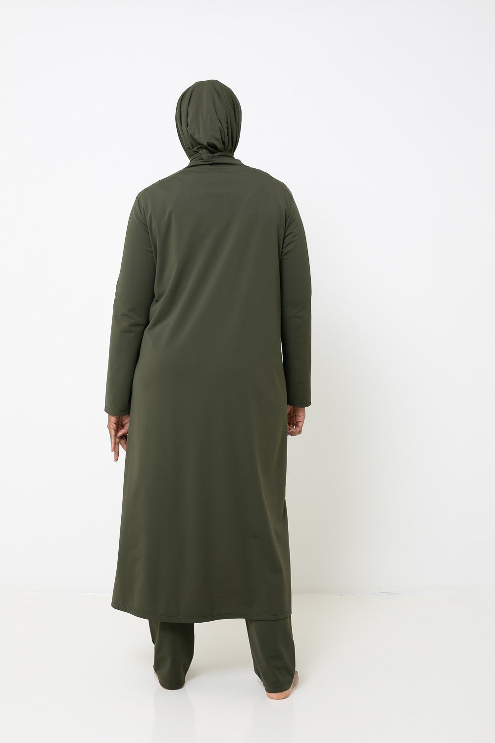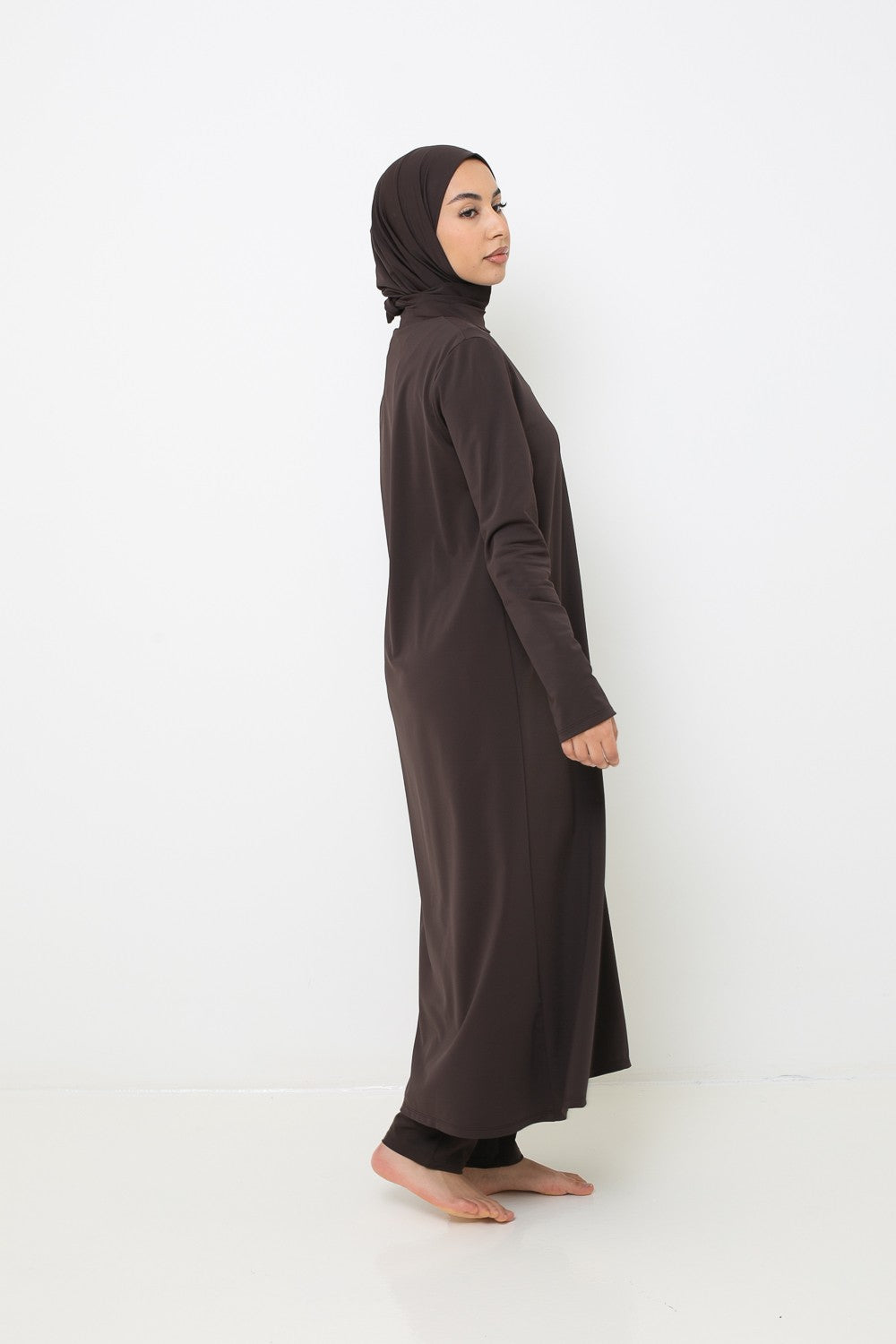 Burkini Hijab Long : La solution idéale pour une couvrance totale avec style. Inclut un haut long couvrant jusqu’aux chevilles, un legging, un hijab long à nouer, un hijab sport, une brassière et une ceinture.
