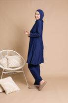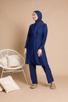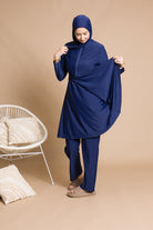 Nouveau modèle de burkini hijab long 2024. Tissu encore plus fluide et qui sèche plus rapidement ! Opaque, léger, agréable à porter. Tunique col montant avec zip et pantalon droit.