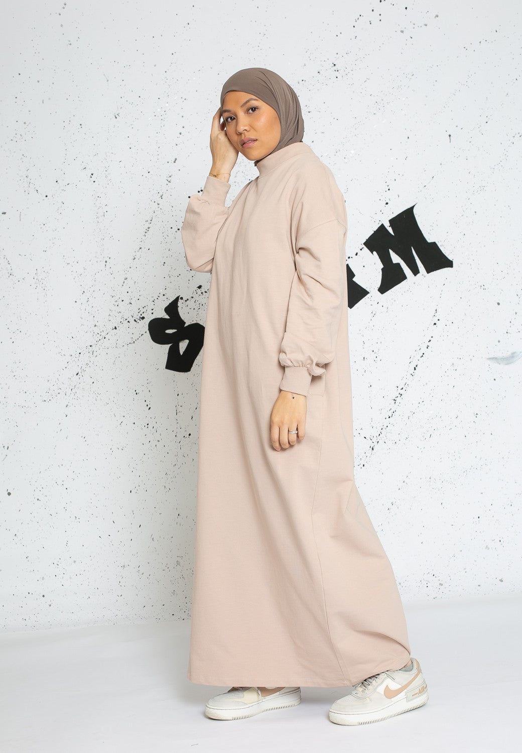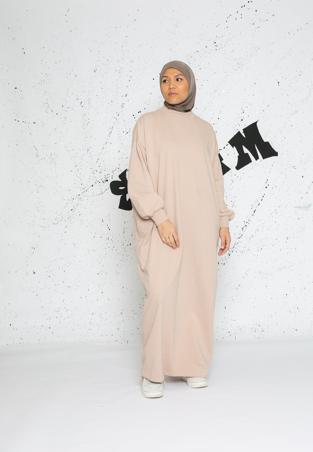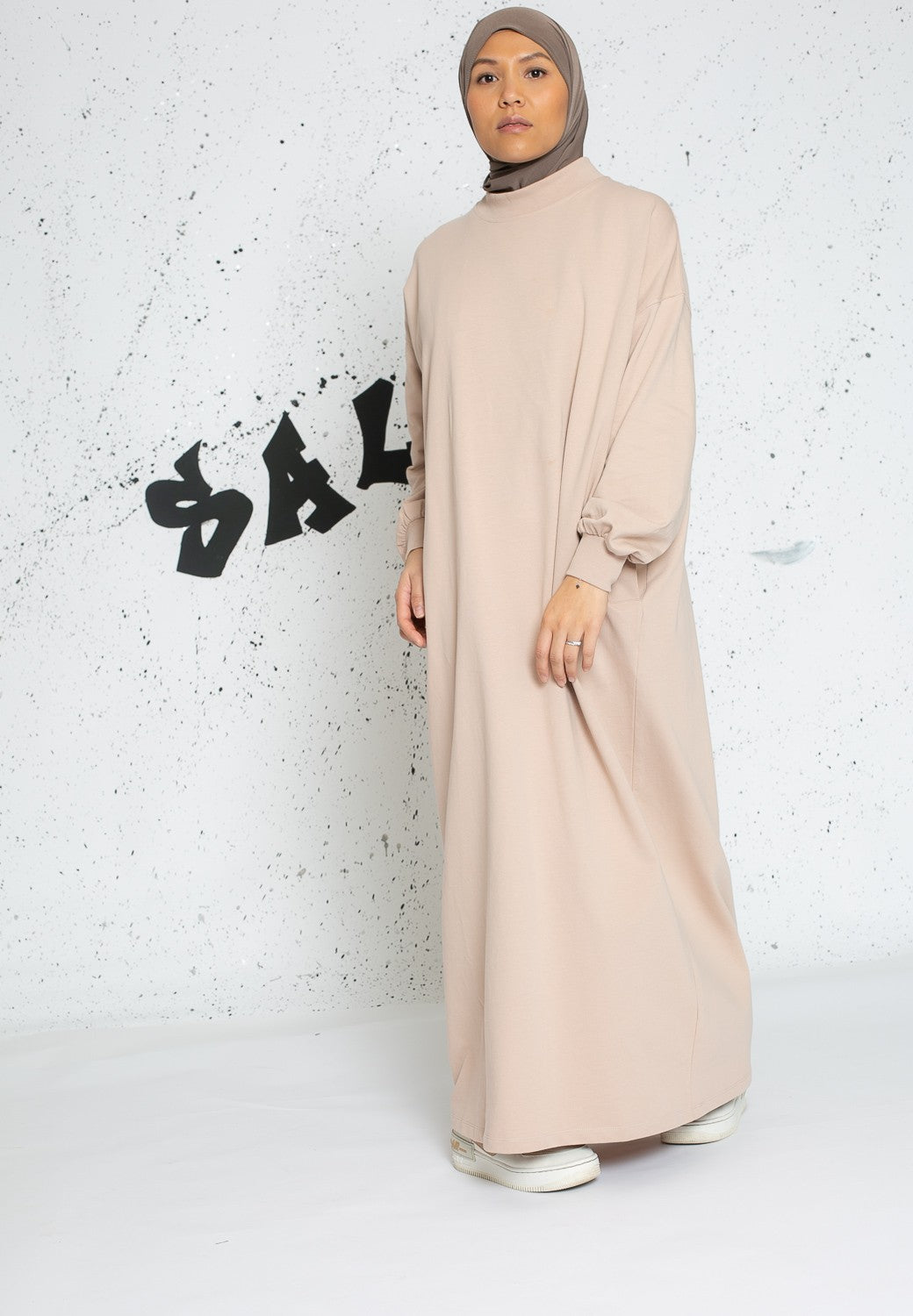 Robe sweat oversize manche large taupe clair