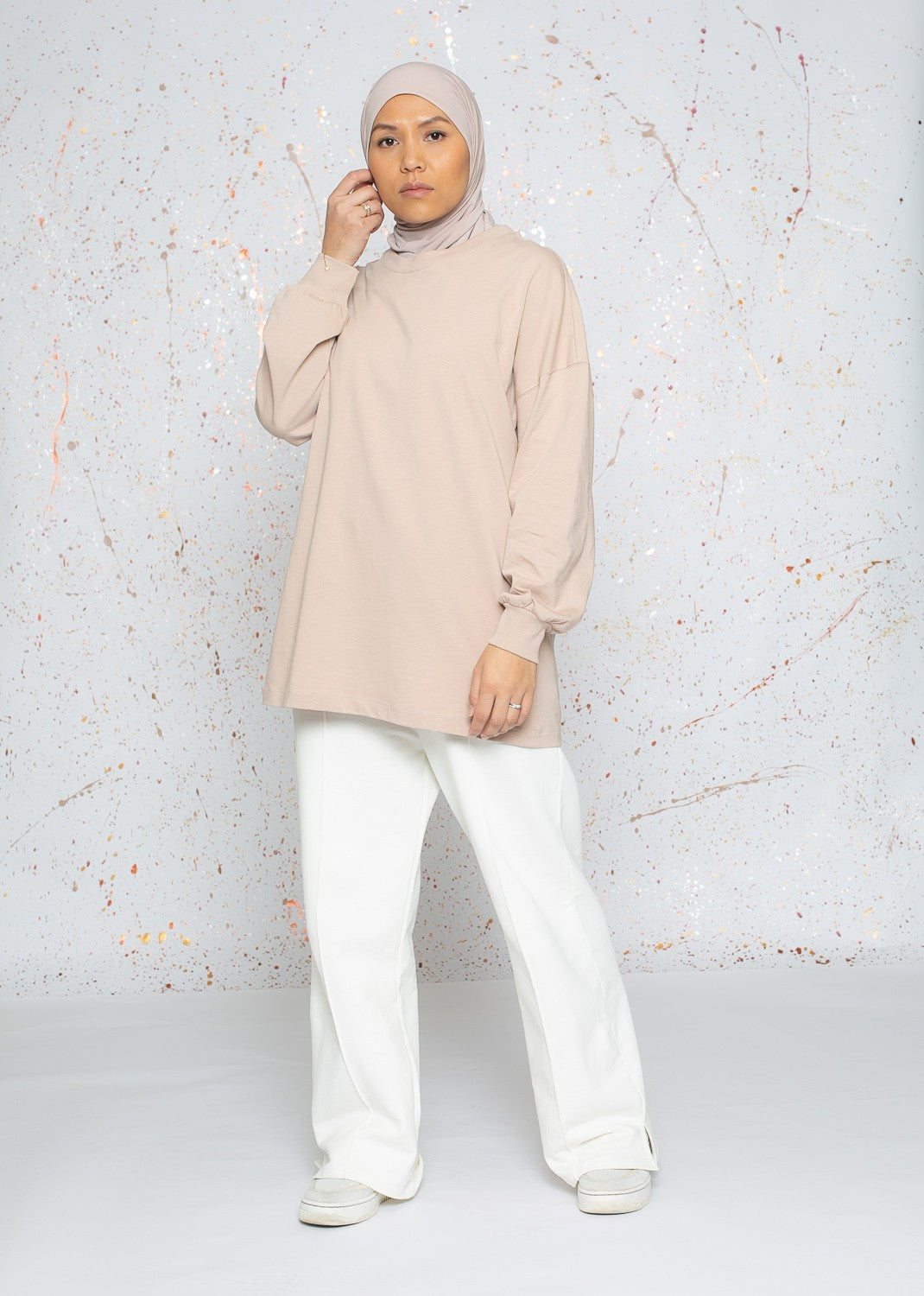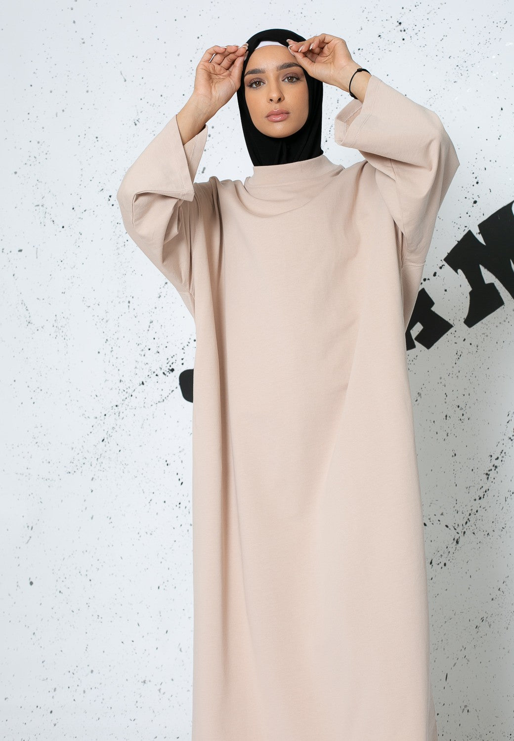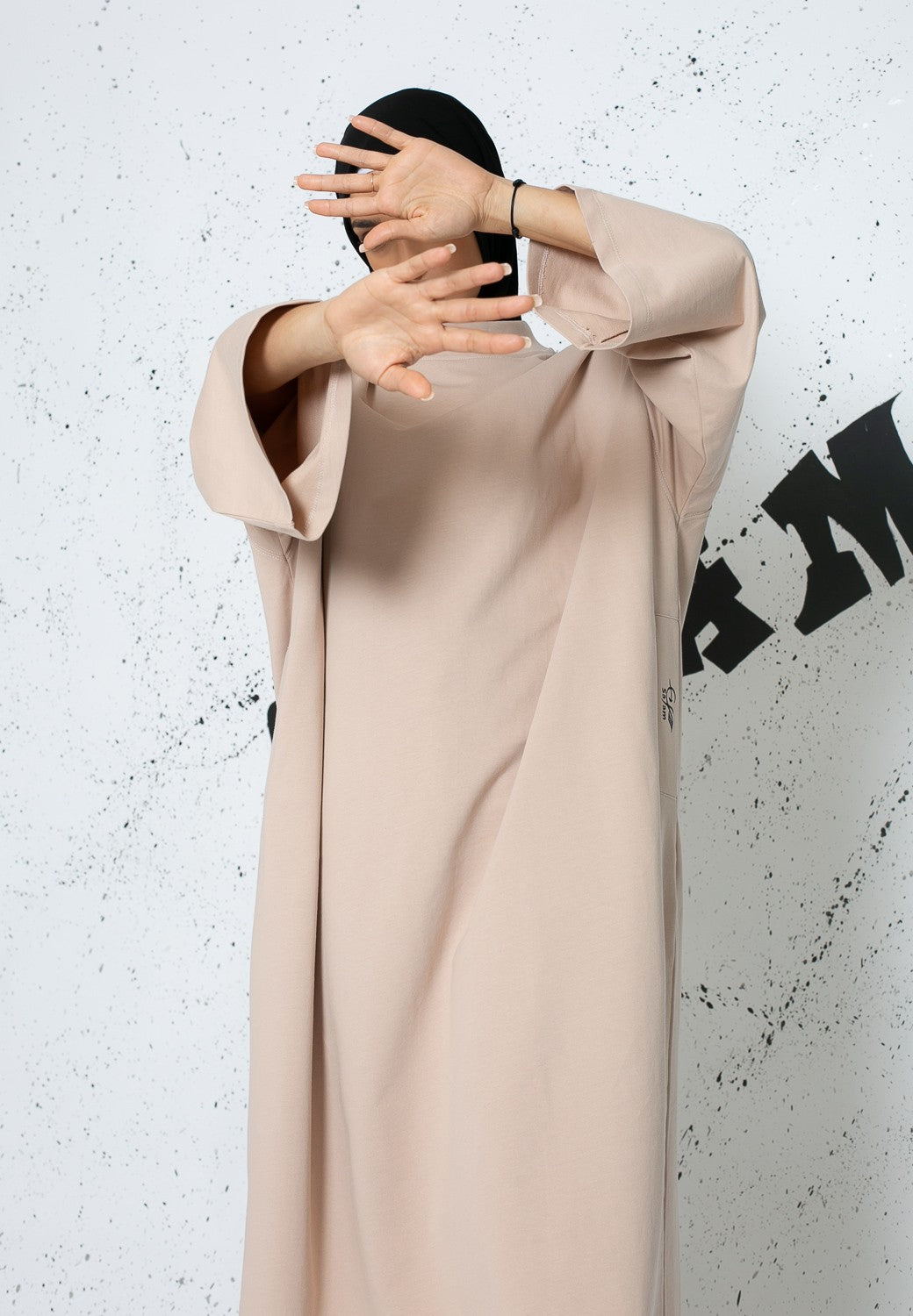 Robe sweat oversize manche large taupe clair