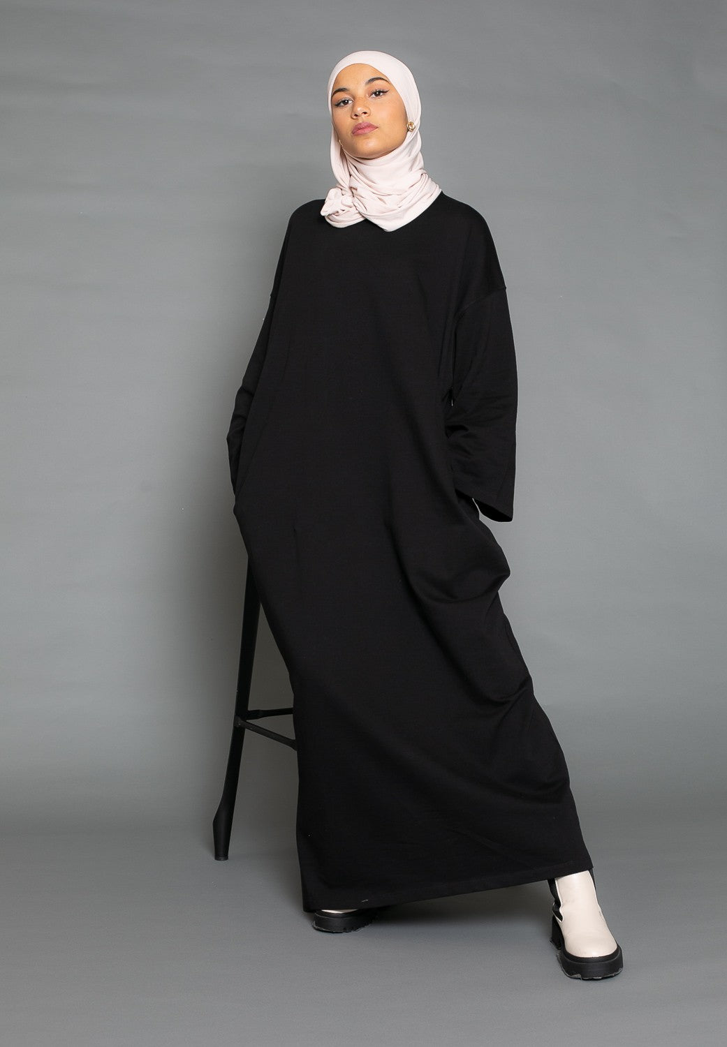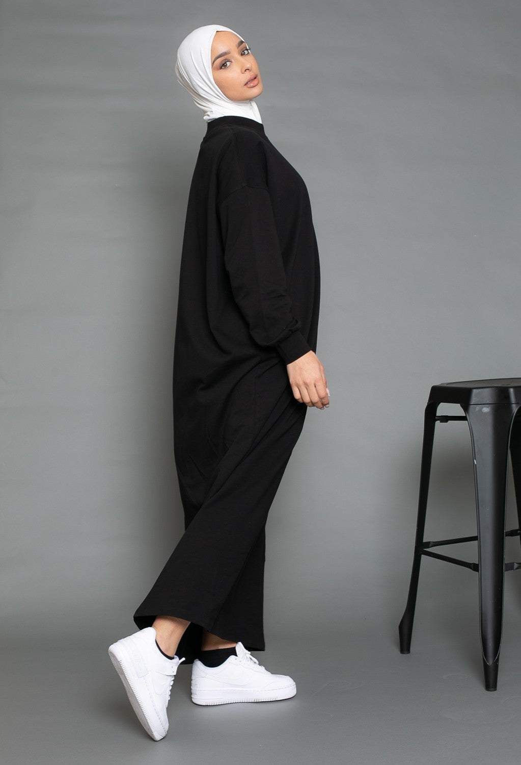 Robe sweat oversize manche large noir
