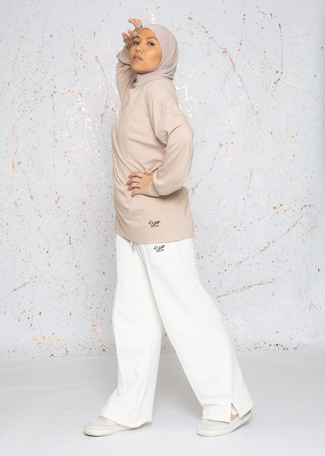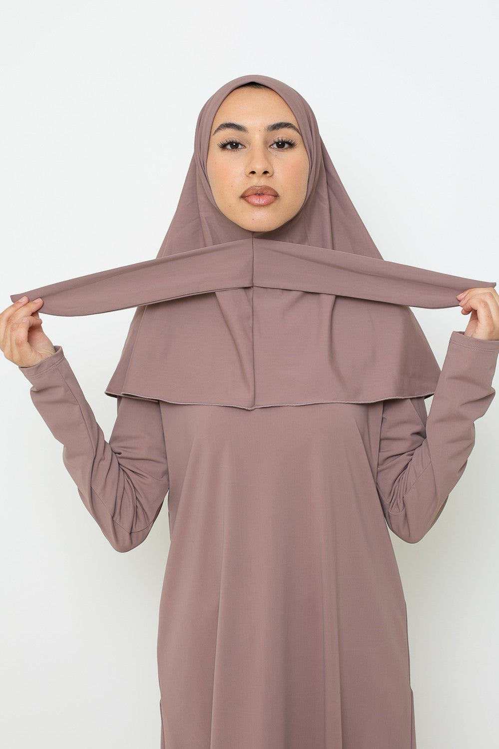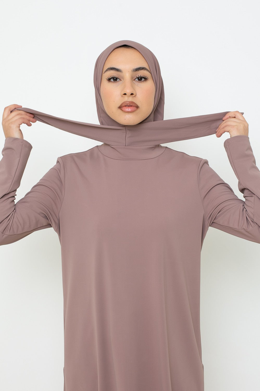 Burkini hijab long taupe rosé