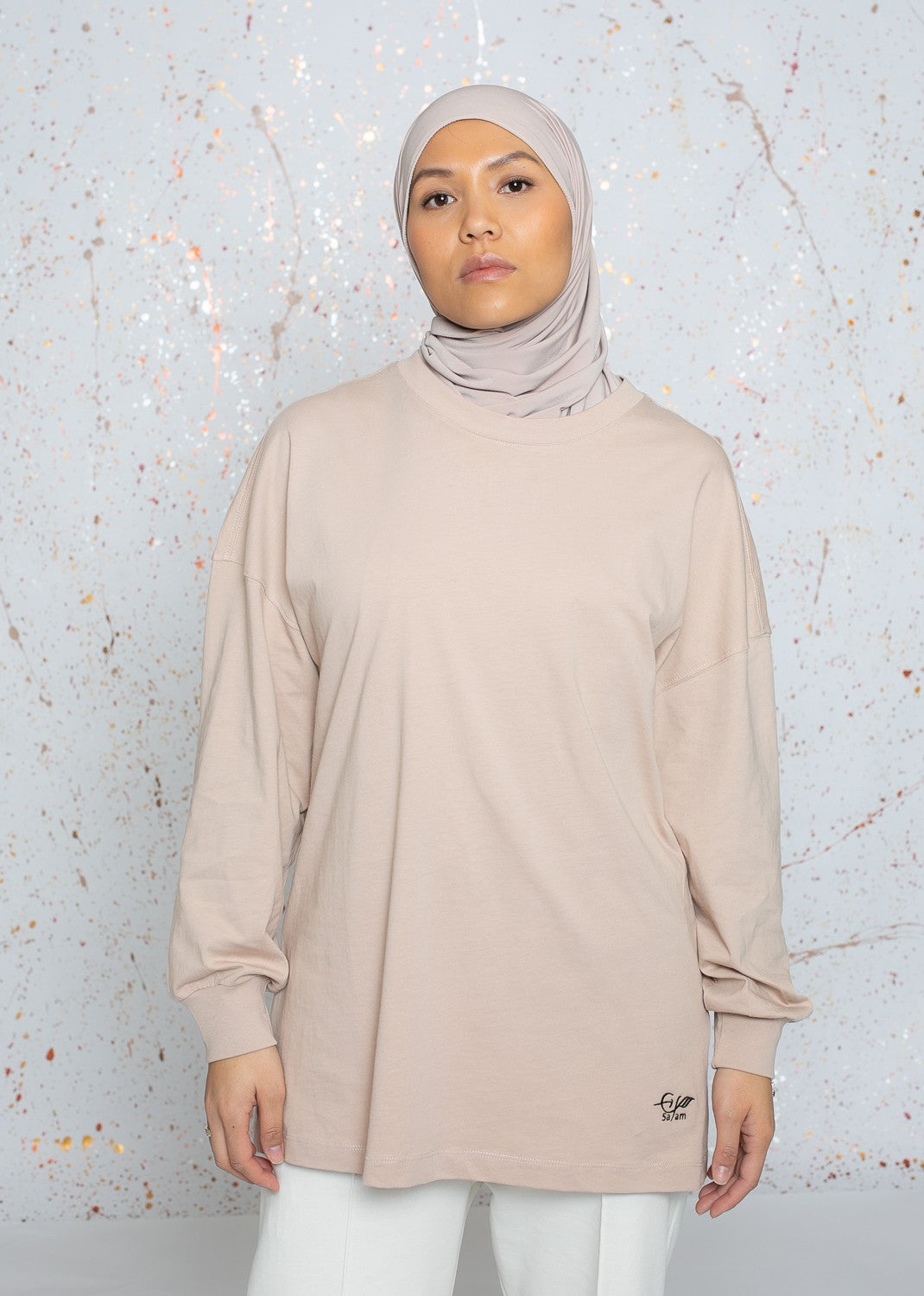Tee shirt manche longue taupe clair