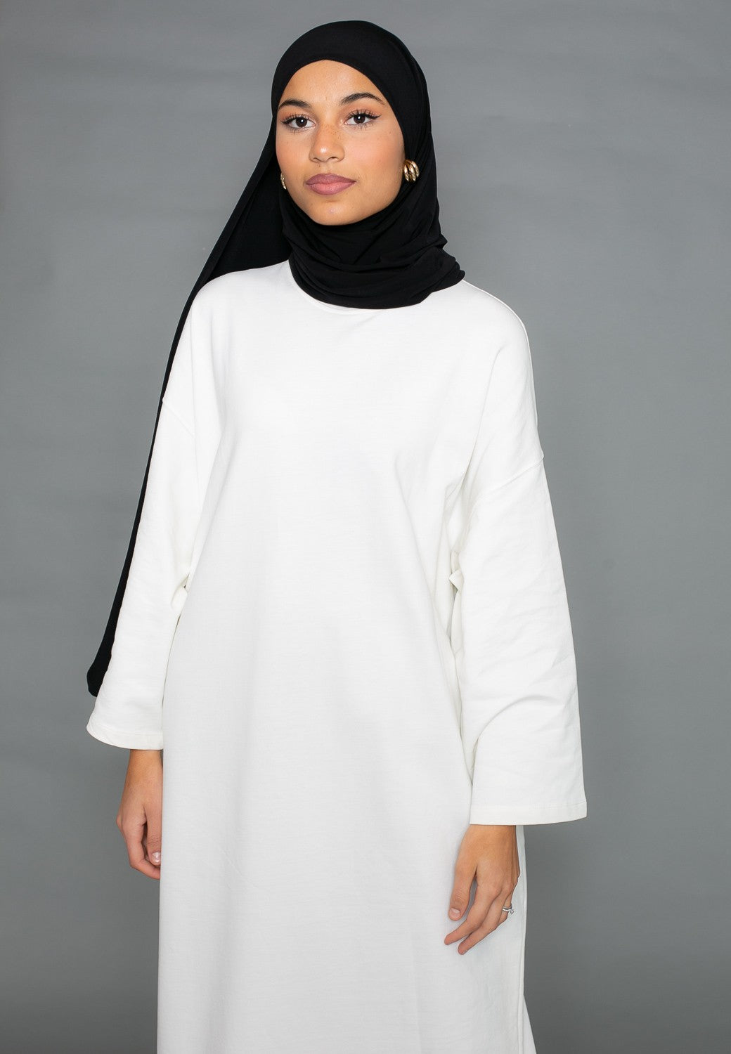 Robe sweat oversize manche large blanc cassé