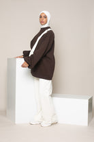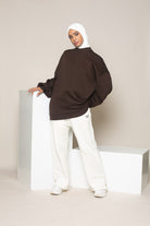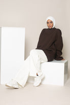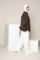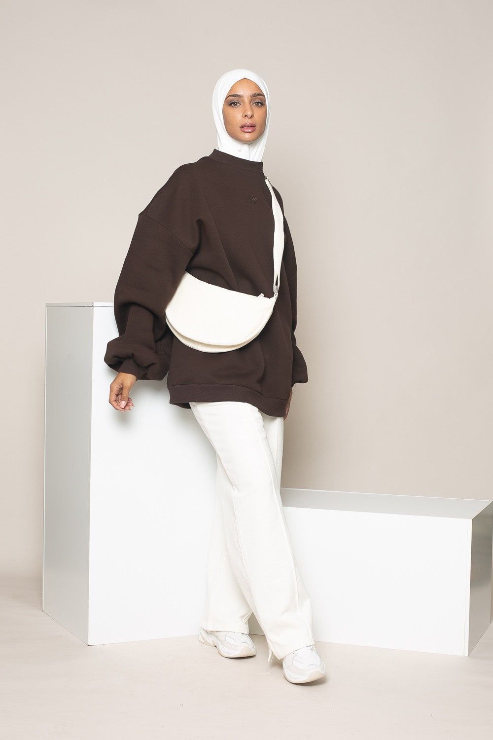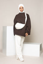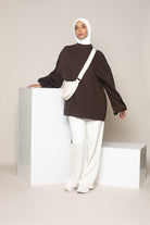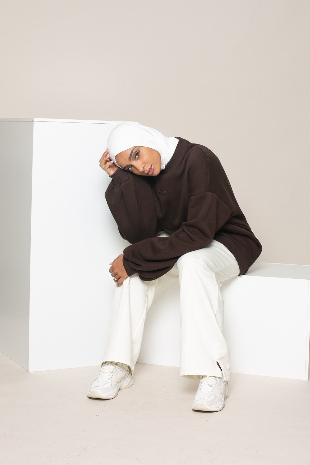 Nous avons ici choisi de la porter avec le bas de jogging Salam blanc cassé mais vous pouvez très bien le porter avec un jeans ou un jogging. Pour finaliser la tenue nous l'avons accordé avec un hijab premium sandy et une paire de baskets. Ce style va très bien avec tous les hijabs en jerseys. Vous pouvez aussi mettre une de nos cagoules à nouer, les hijabs easy et nos casquettes hijab.