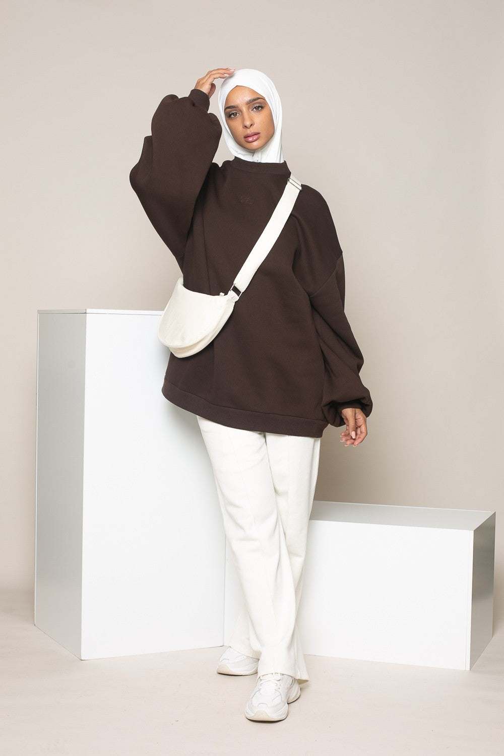 Le sweat oversize est un incontournable pour celle qui aime le sportswear. Les coupes larges sont ultra tendance en ce moment. Avec ce sweat de qualité au rendu décontracté et moderne vous serez à l'aise dans votre quotidien mais aussi pendant vos activités sportives d'extérieur. Broderie Salam ton sur ton. Faites la différence en portant des pièces uniques et de qualité. La touche ultra tendance c'est la manche bouffante qui donne tous le style à ce sweat. Marque Française fabrication en Turquie de haute qualité.