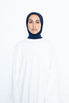 Hijab prêt à enfiler, il vous suffit de fermer les pressions à l'arrière. Idéal pour votre quotidien mais aussi pour le sport et même pour la piscine car le tissu sèche très rapidement.
