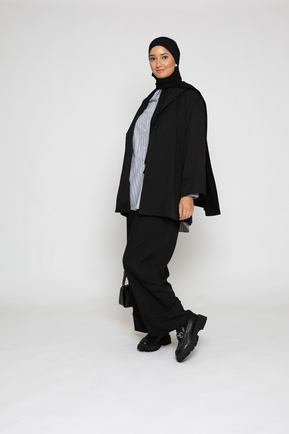 Nos ensembles sont confectionnés dans des matières de qualité, allant des tissus épais pour l’hiver aux étoffes légères et aériennes pour les journées plus douces. Chaque modèle est pensé pour allier confort, praticité et sophistication, avec des coupes adaptées aux exigences de la mode pudique.