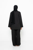 Nous l’avons porté avec le hijab jersey premium noir et une paire de chaussure bordeaux.