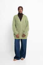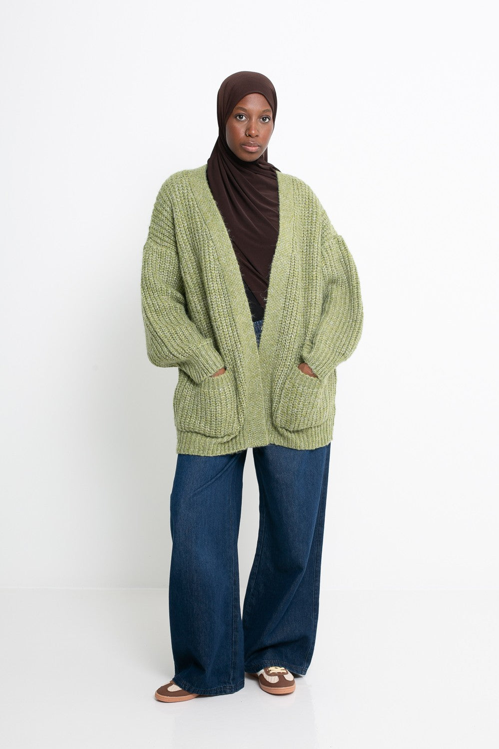 Son coloris marron profond agrémenté de teintes bleutées lui confère un charme unique, pour un rendu sophistiqué et original. La coupe oversize assure un tombé fluide et confortable, parfait pour les superpositions. Les poches à l’avant ajoutent une touche pratique et casual, tout en renforçant l’esprit cocooning de ce gilet.