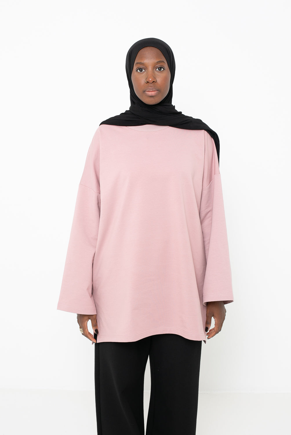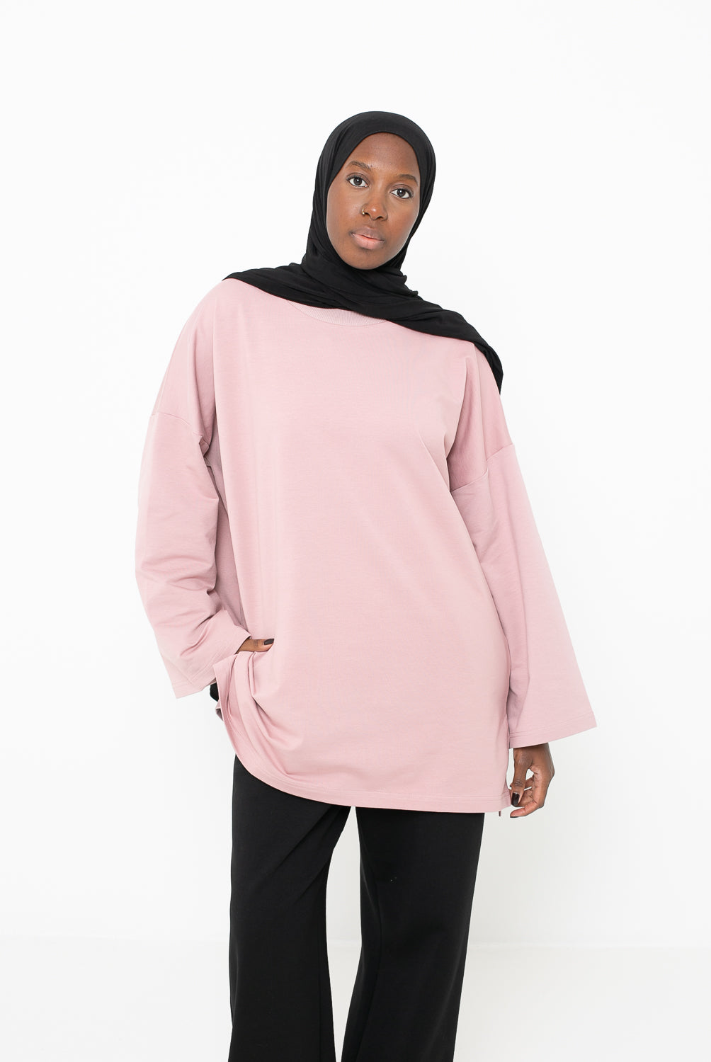 Haut ample en coton léger, doux et très agréable à porter, avec une coupe longue et couvrante idéale pour un style décontracté et modeste. Ses manches larges et son col rond apportent confort et praticité en toute simplicité. Une pièce CM de qualité, parfaite pour la mi-saison. Idéal au quotidien.