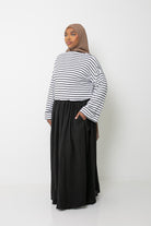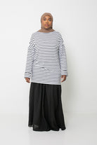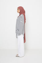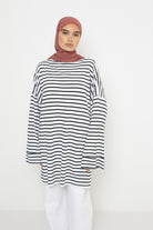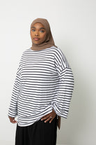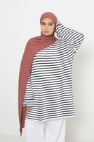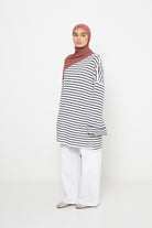 Adoptez le confort stylé avec notre marinière CM. Confectionnée en viscose premium, elle séduit par sa fluidité, sa légèreté et son opacité parfaite. Sa coupe ample, son col bateau inédit, idéal pour un hijab bien positionné sans laissé apparaître la peau, et ses détails soignés comme les revers aux manches et les petites fentes en font une pièce aussi pratique que tendance.