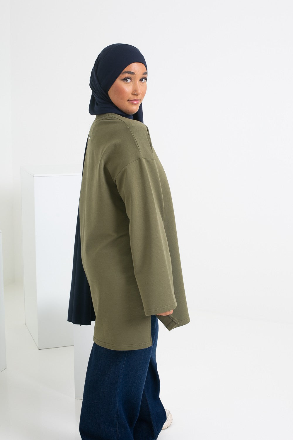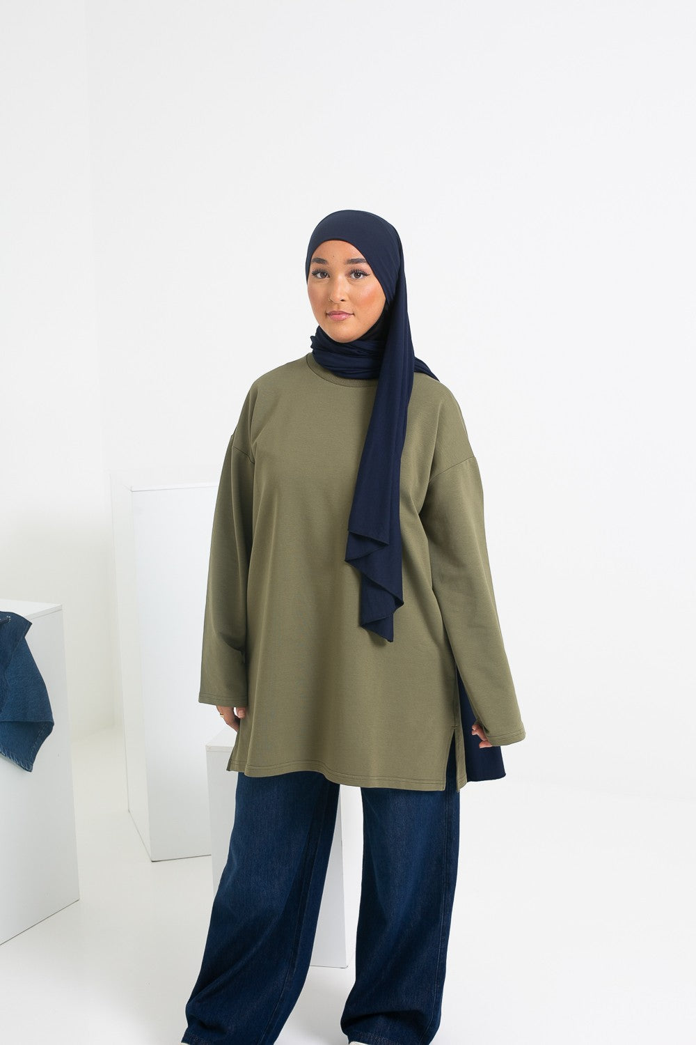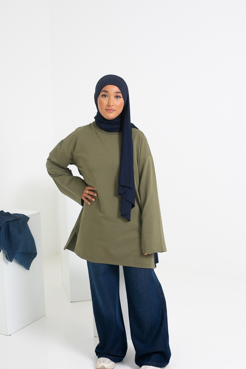 Découvrez notre sélection de hauts modestes pensés pour les femmes musulmanes, alliant confort et style contemporain. Que vous recherchiez un haut ample, une chemise fluide, un sweat oversize, ou encore un pull d’hiver chaud, notre collection est conçue pour répondre à vos besoins tout en respectant votre style pudique.