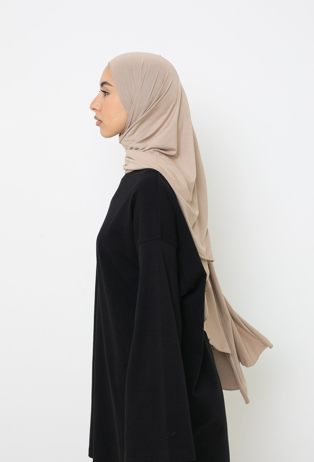 Le hijab en jersey est un incontournable. Facile à assortir, il s’adapte à toutes les tenues. Pour un look plus raffiné et élégant, nous recommandons également le soie de Médine ou le premium sandy jersey, qui offrent un fini plus sophistiqué.