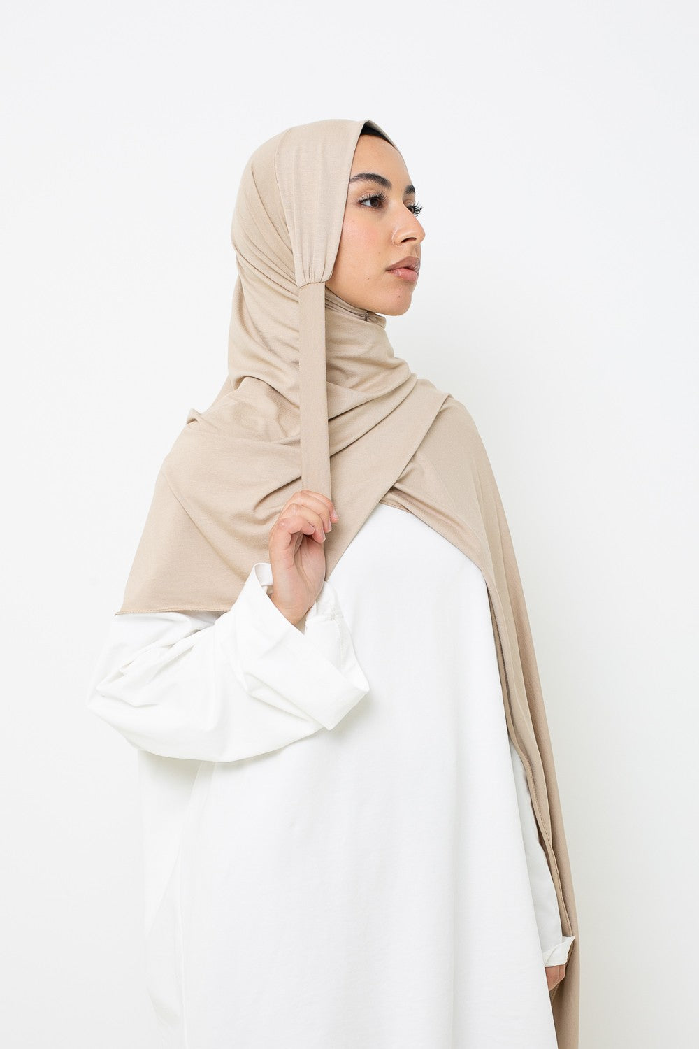 Tissu opaque en viscose. Il vous suffit de nouer les deux pans à l'arrière de votre nuque et de le rabattre vers l'avant.