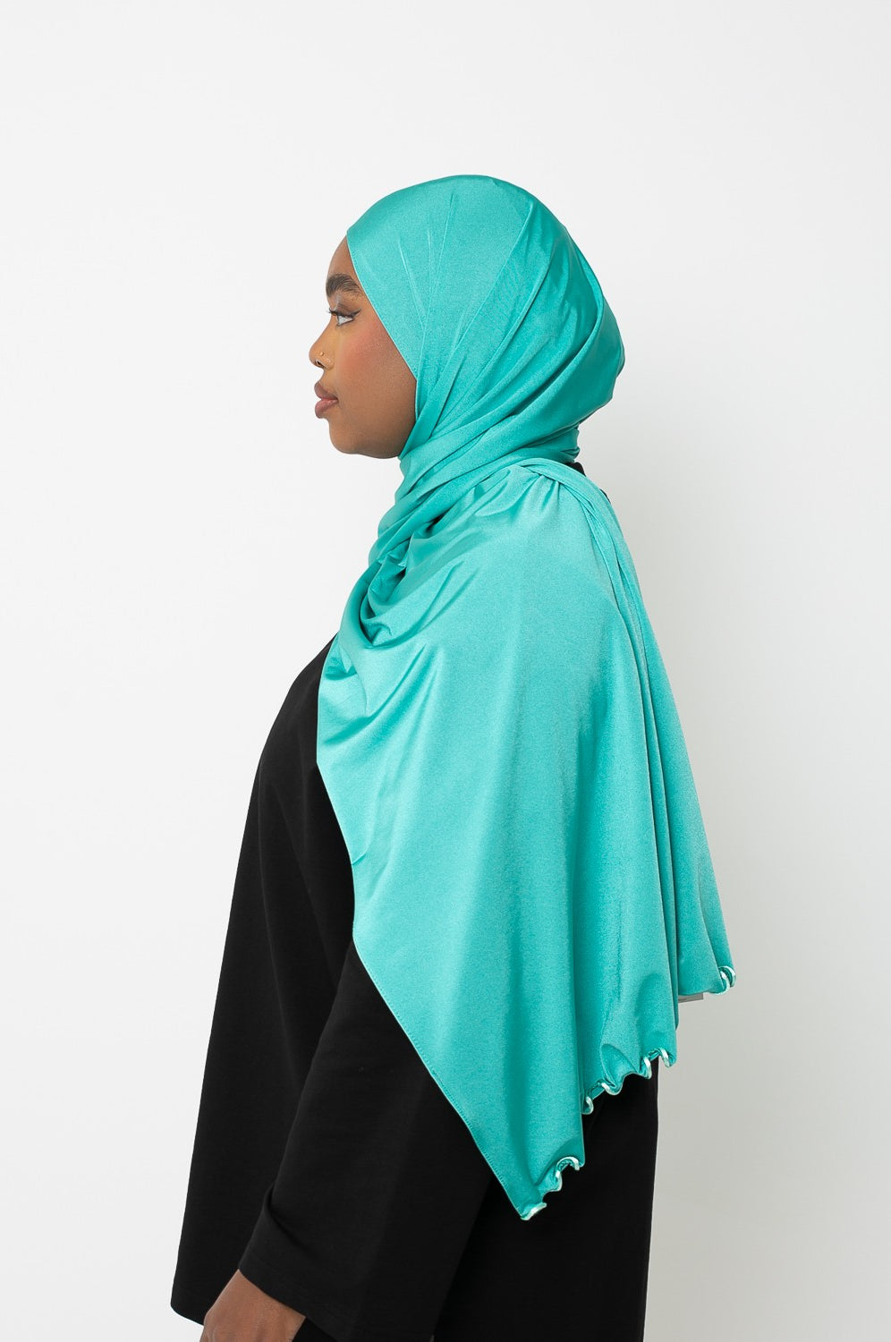 Découvrez le Hijab Vague, une création exclusive Chic and Modesty, conçu pour sublimer vos tenues avec une touche sophistiquée. Ce hijab est confectionné dans un tissu légèrement satiné qui capte délicatement la lumière, offrant un rendu fluide et élégant.