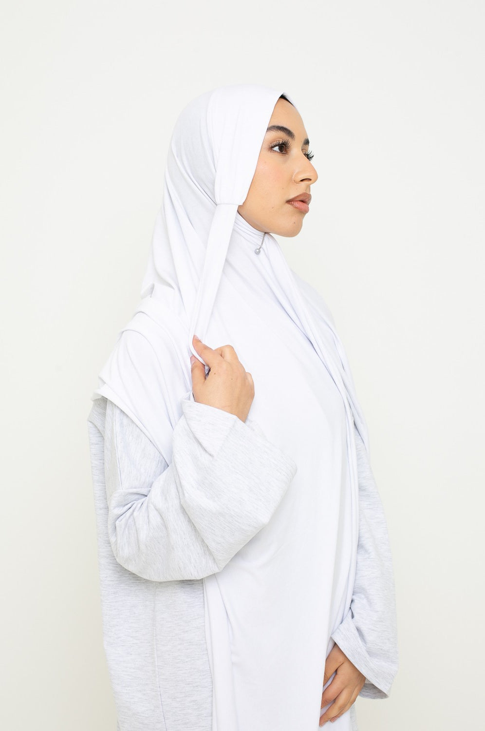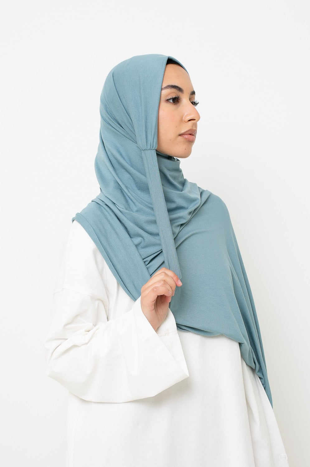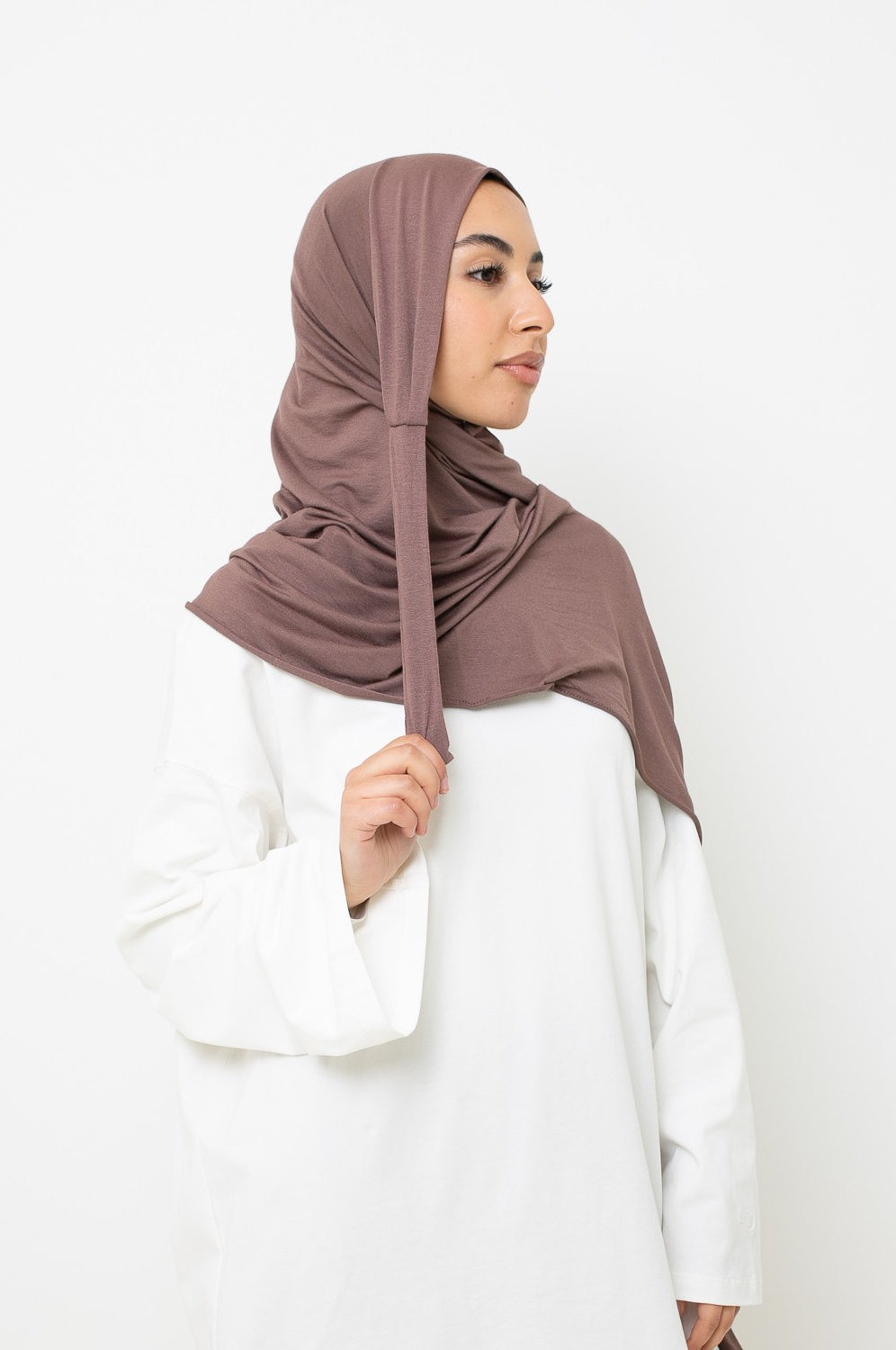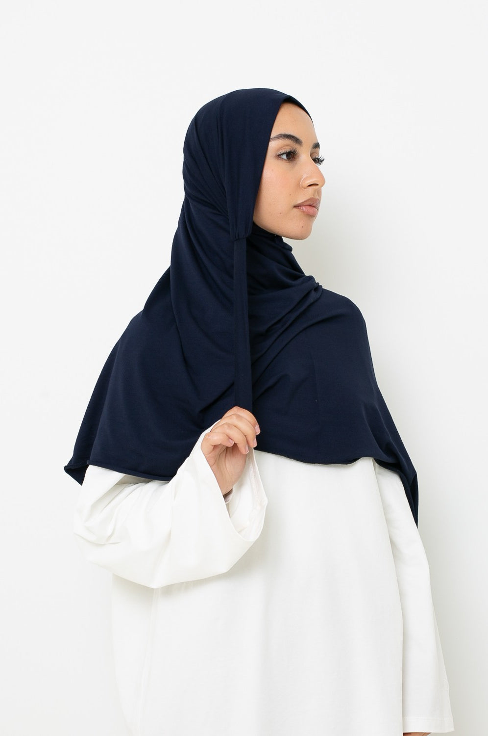- Hijab Jersey à Nouer : encore plus pratique, il s’attache facilement et épouse la forme du visage sans effort.