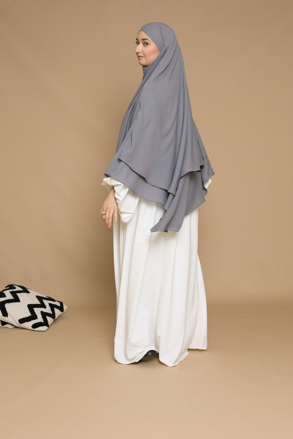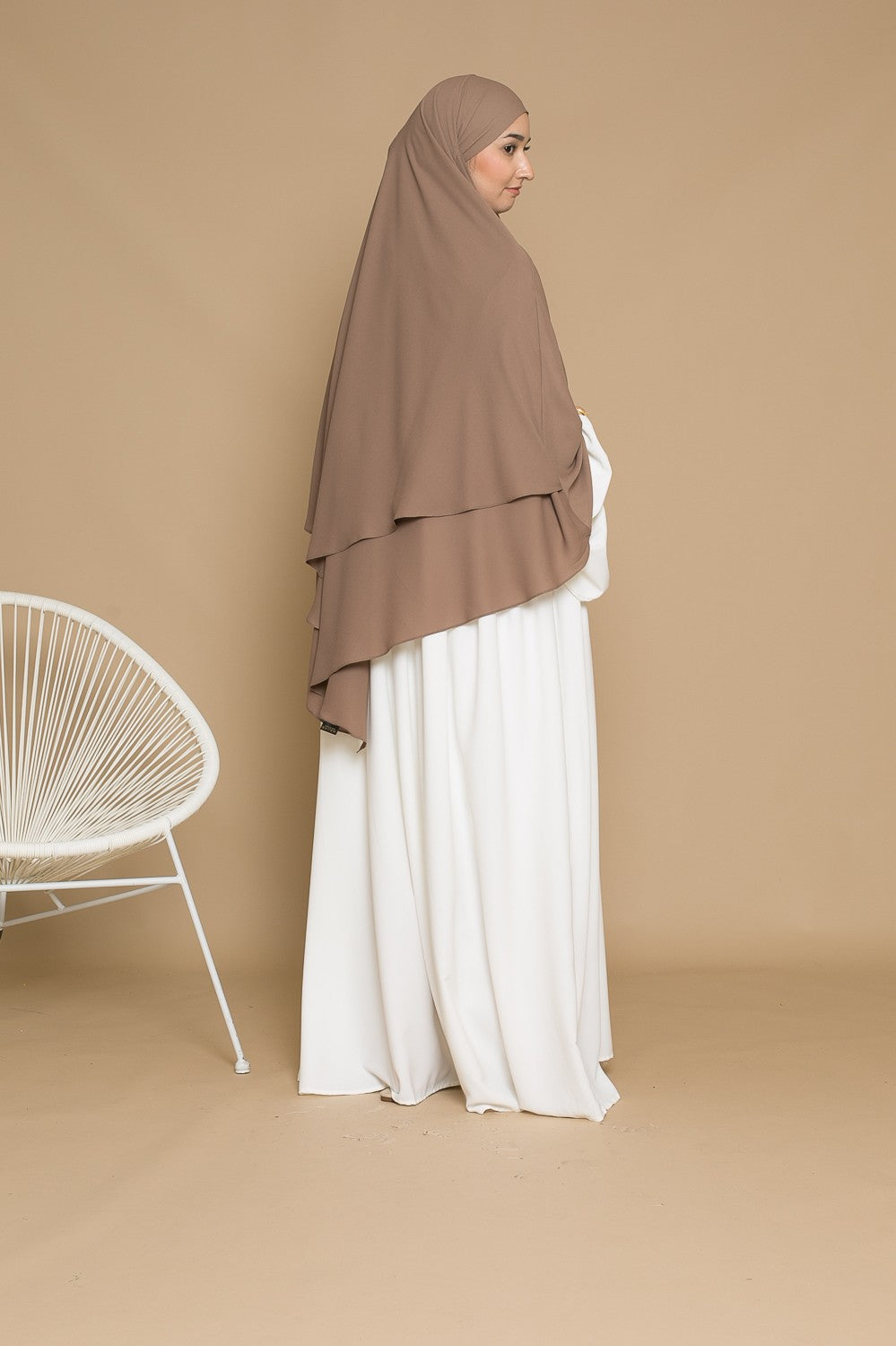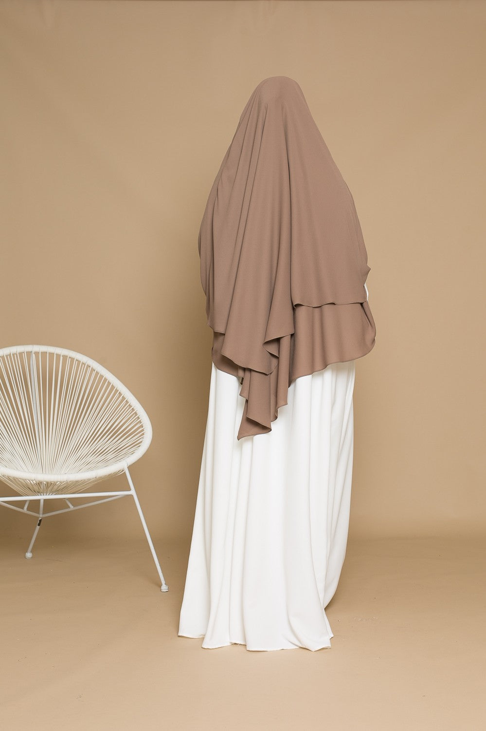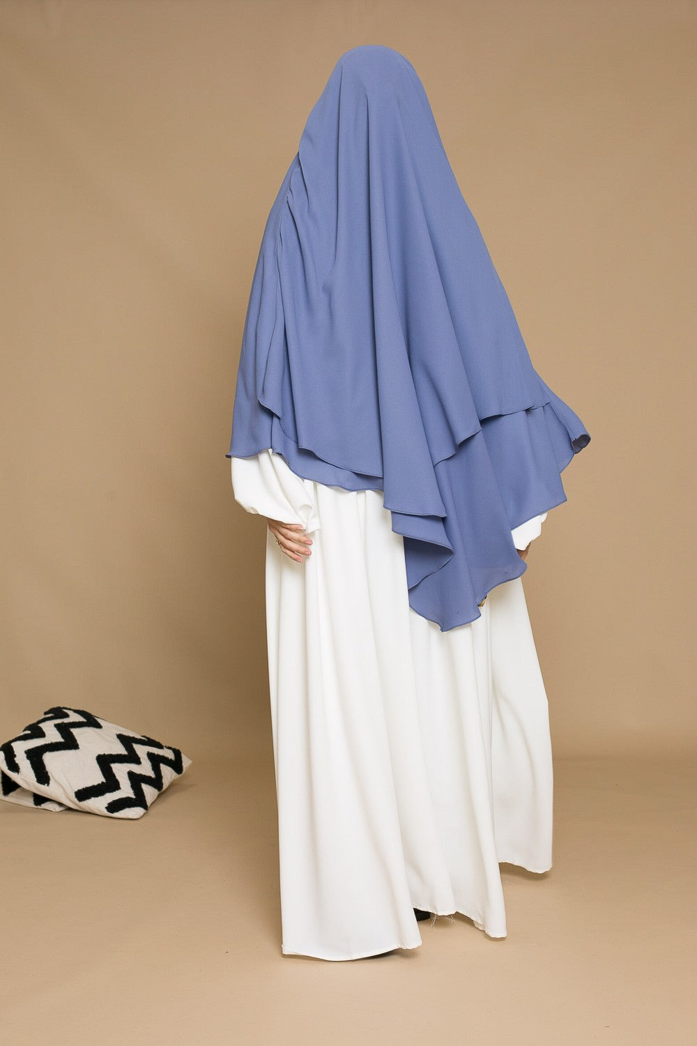 Le khimar double voile est conçu pour celles qui recherchent une touche d'originalité. Composé de deux couches de tissu légère à l'arrière, il assure une opacité optimale tout en restant fluide et confortable. Sa conception élégante en fait un choix privilégié pour la prière, les visites à la mosquée ou les événements religieux.