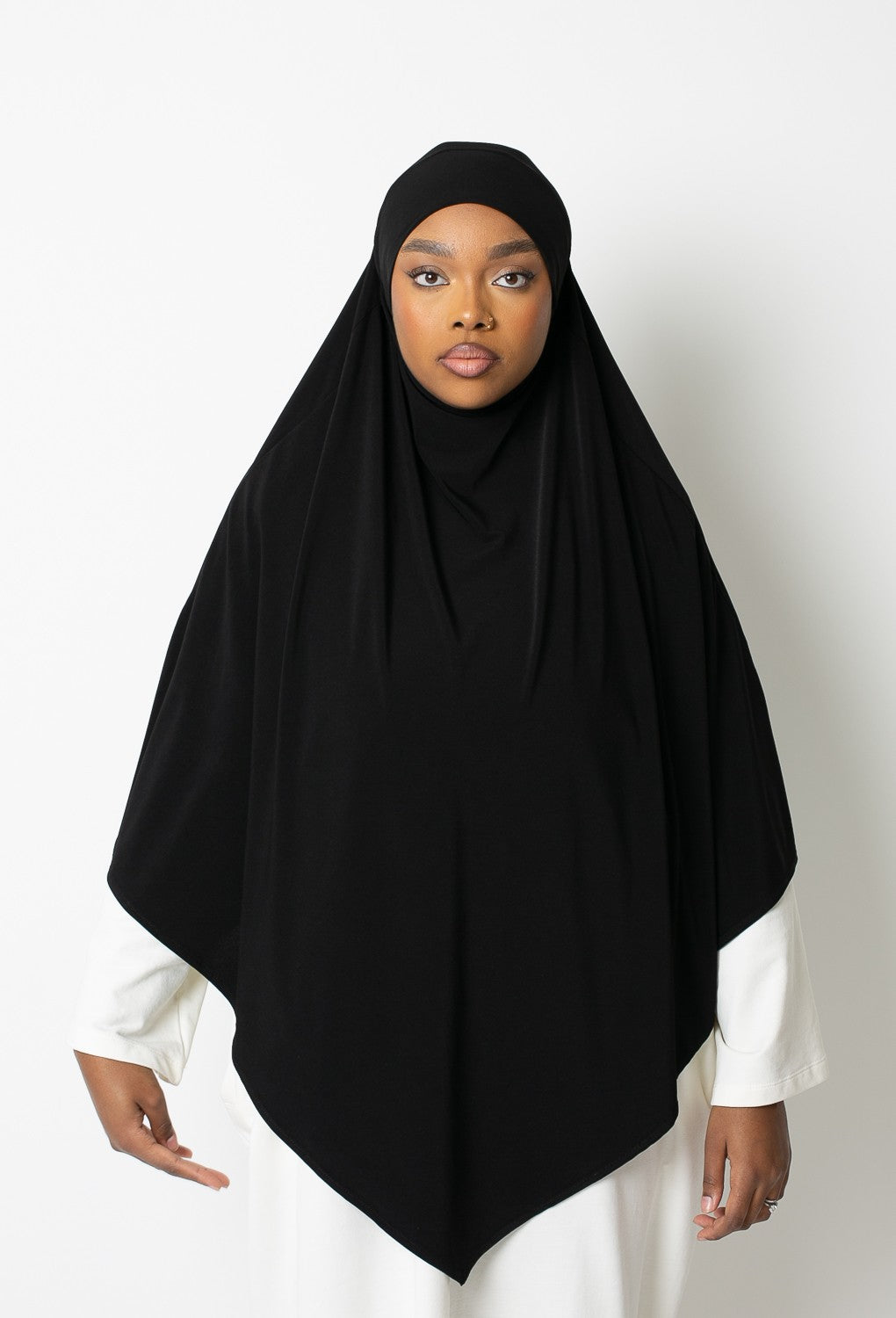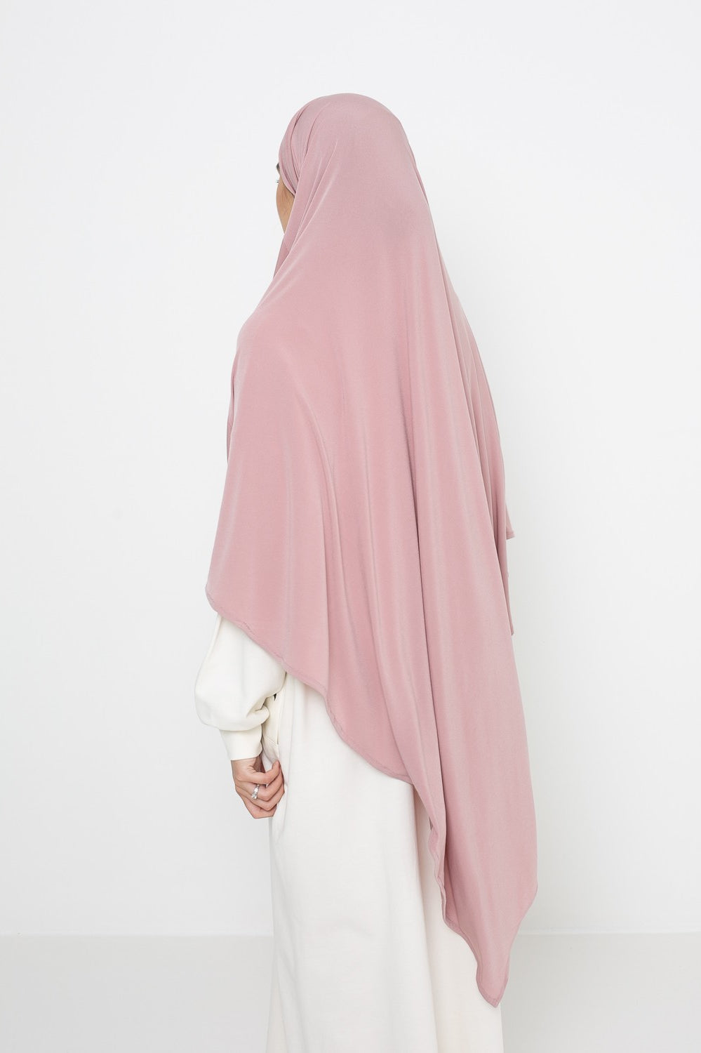 Le khimar en jersey premium se distingue par son élasticité et son confort exceptionnel. Ce tissu doux et extensible épouse délicatement les contours sans comprimer, offrant une sensation de légèreté tout au long de la journée. Idéal pour un usage quotidien, il est infroissable et facile d'entretien.