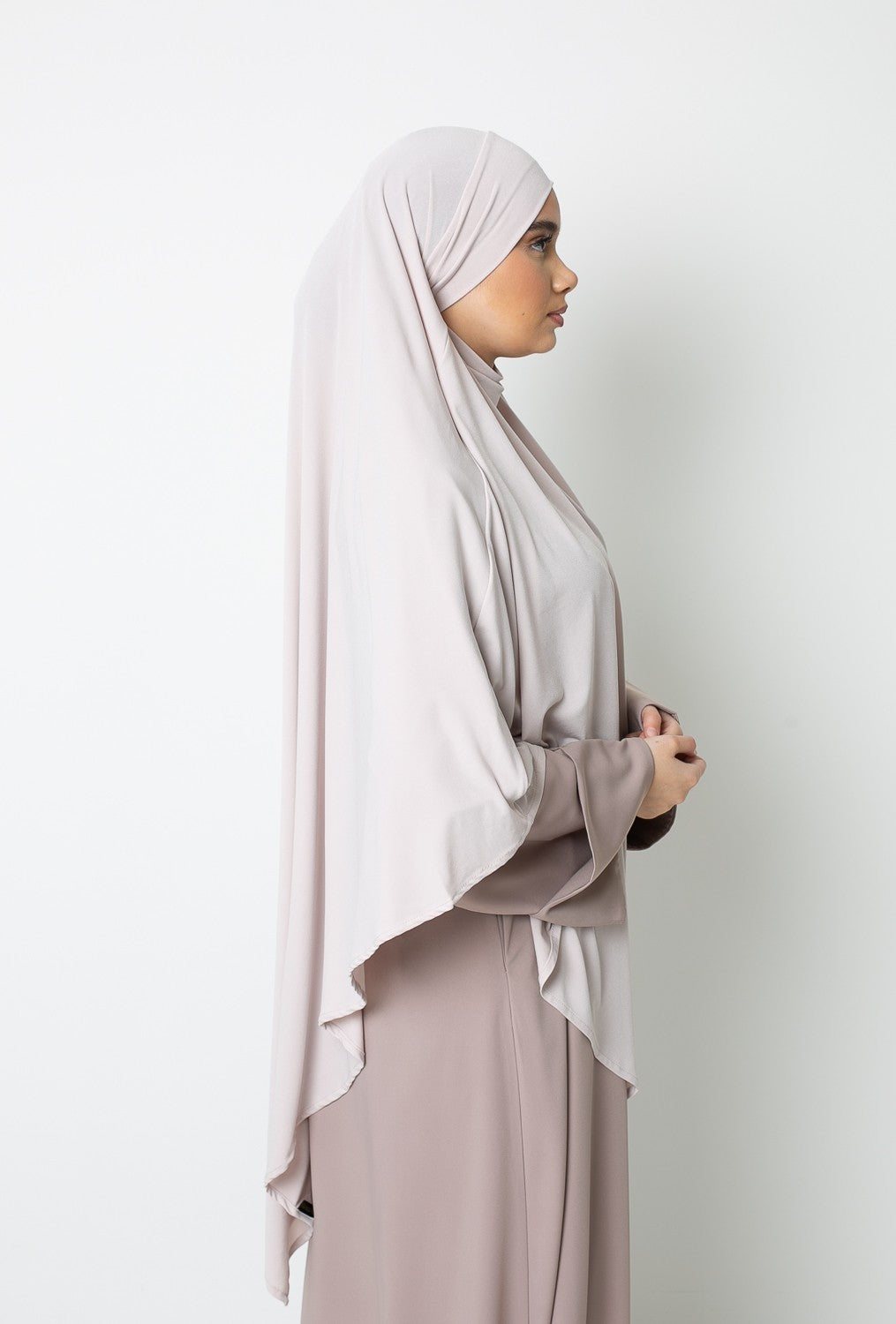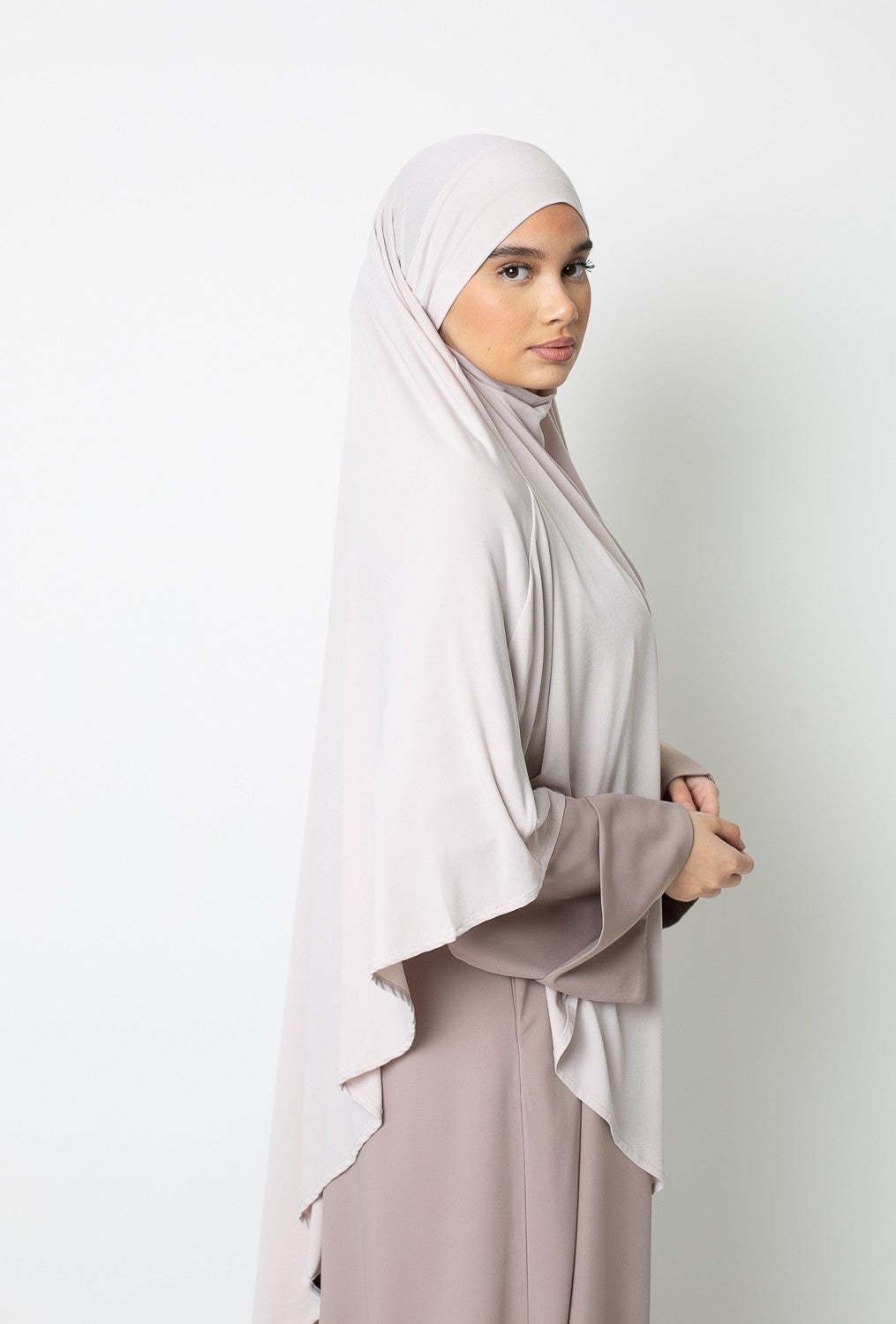 Khimars élégants et confortables en Jazz, jersey premium, soie de Médine et double voile, adaptés pour la prière, la mosquée, le Hajj et l'Omra.