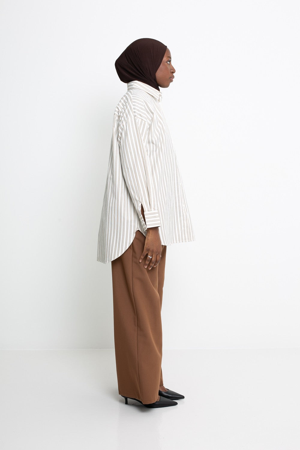Chemise classe rayée pour femme moderne musulmane. Boutique hijab tendance