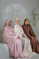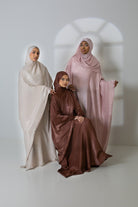 Une conception pensée dans les moindres détails : La coupe arrondie en bas évite que le tissu ne traîne, offrant ainsi une meilleure praticité au quotidien. Pour une harmonie parfaite, cette abaya est accompagnée d’un hijab assorti.