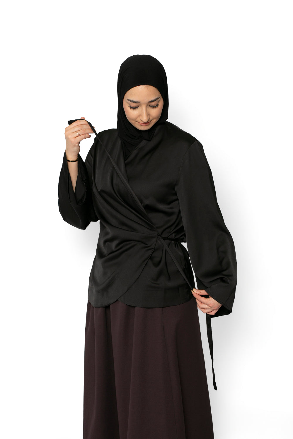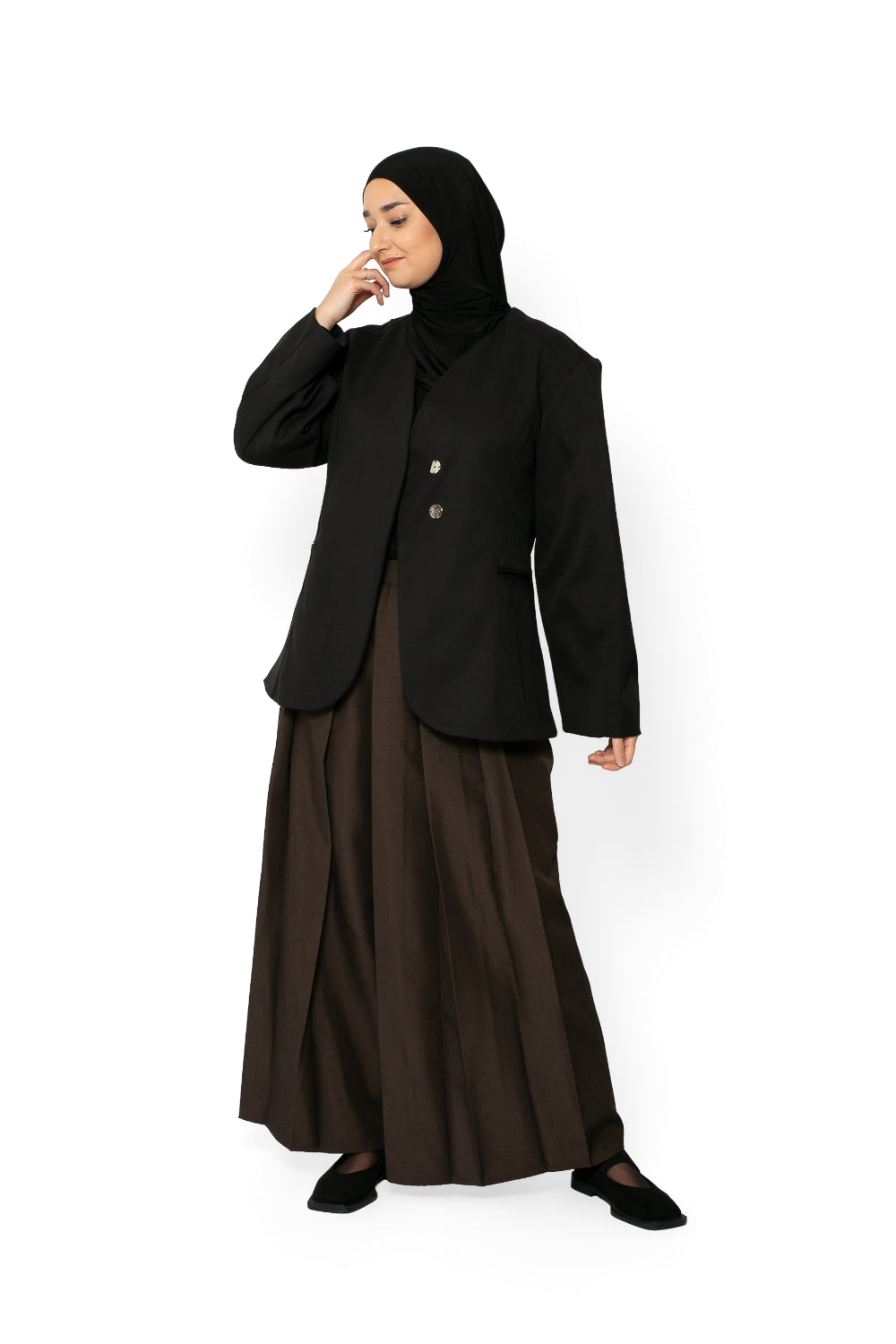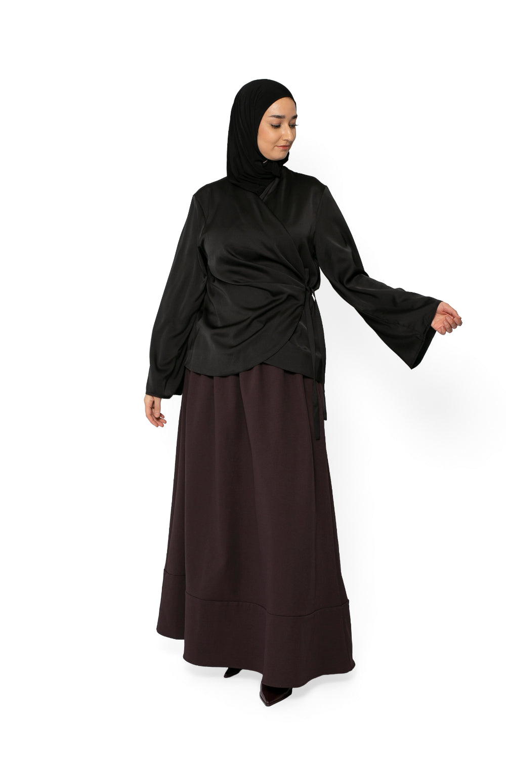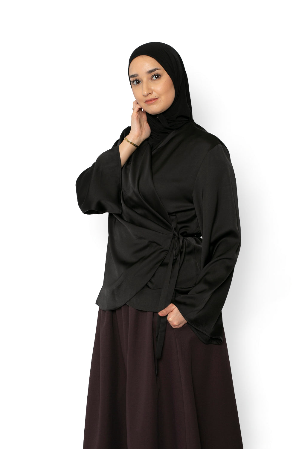 Notre prêt-à-porter rassemble des robes longues mastour, abayas modernes, kimonos élégants, jeans amples, pantalons larges taille élastique, jupes longues, t-shirts et maxi t-shirts, hauts fluides, chemises structurées, vestes et manteaux longs ou courts. Chaque pièce est conçue pour offrir une silhouette harmonieuse tout en respectant les codes de la mode modeste.