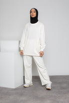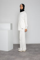Pour cet outfit nous avons porté le bas de jogging large pour femme de la marque Salam et un hijab premium sandy jersey noir. Vous pouvez également porter le tee shirt oversize avec un jeans large ou avec un de nos ensembles.