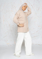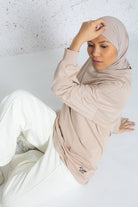 Pour cet outfit nous avons porté le bas de jogging large pour femme de la marque Salam et un hijab premium sandy jersey. Vous pouvez également porter le tee shirt oversize avec un jeans large ou avec un de nos ensembles.