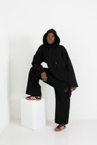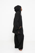 Ses fentes latérales apportent une aisance supplémentaire dans les mouvements et une belle fluidité lorsqu’on marche. Elle dispose aussi de poches pratiques pour garder vos essentiels à portée de main, et d’une capuche souple qui ajoute une touche décontractée et fonctionnelle.