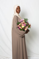 Le col monte bien haut, permettant un porté élégant du hijab.