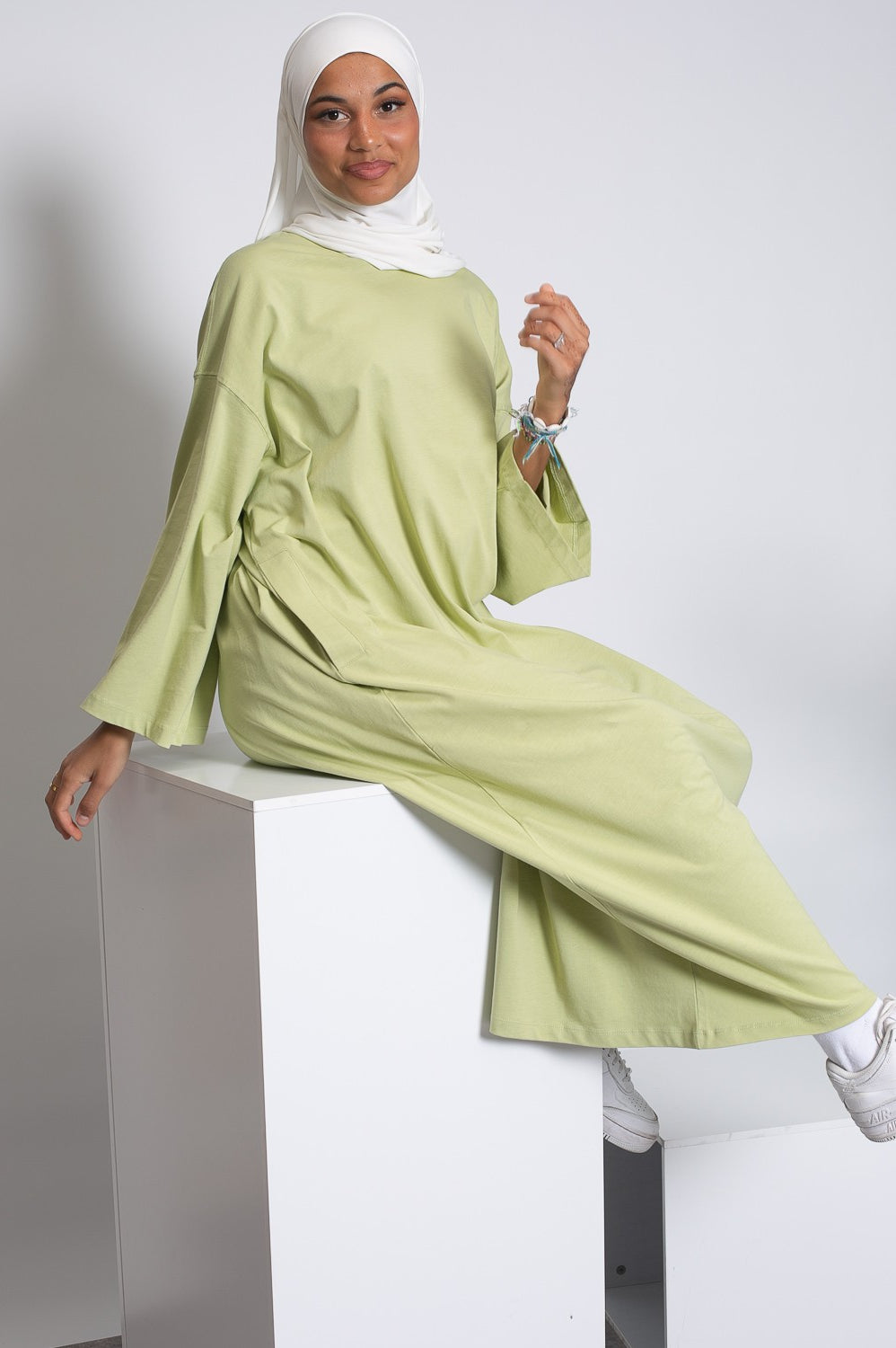 Ensembles abaya ou pantalons et hauts/chemises : Nos ensembles coordonnés facilitent le choix de votre tenue en proposant des combinaisons harmonieuses d'abayas avec leurs accessoires assortis, ou de pantalons avec des hauts ou chemises. Ces ensembles sont pensés pour offrir une cohérence stylistique tout en permettant une expression personnelle à travers différents motifs et palettes de couleurs.