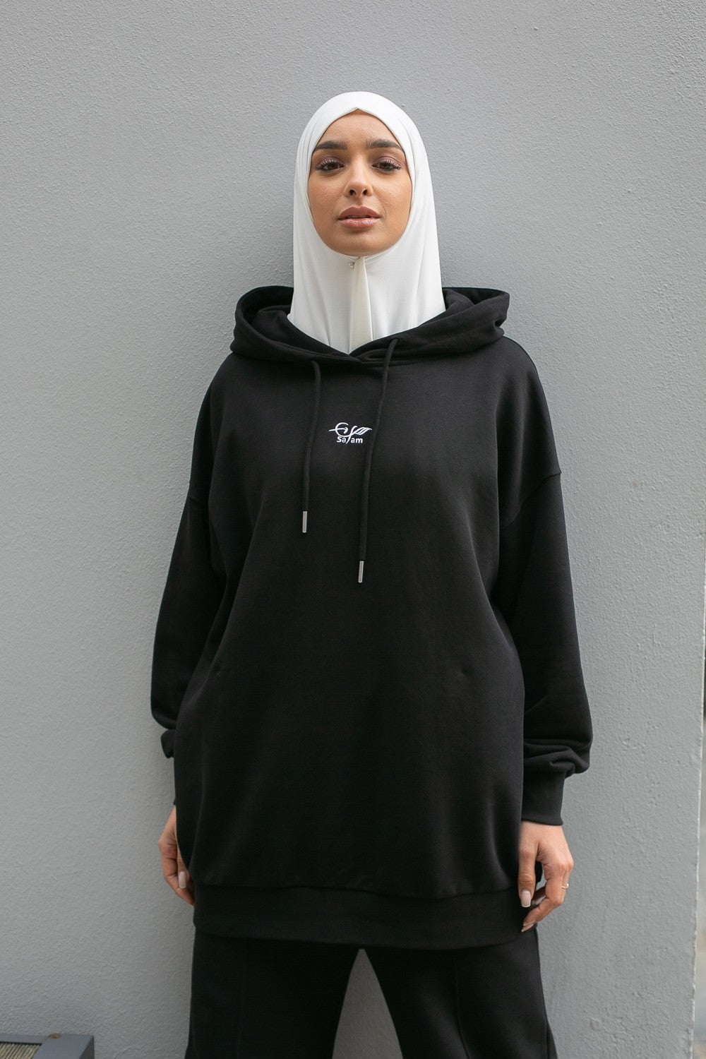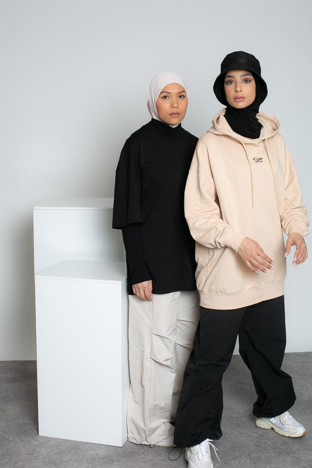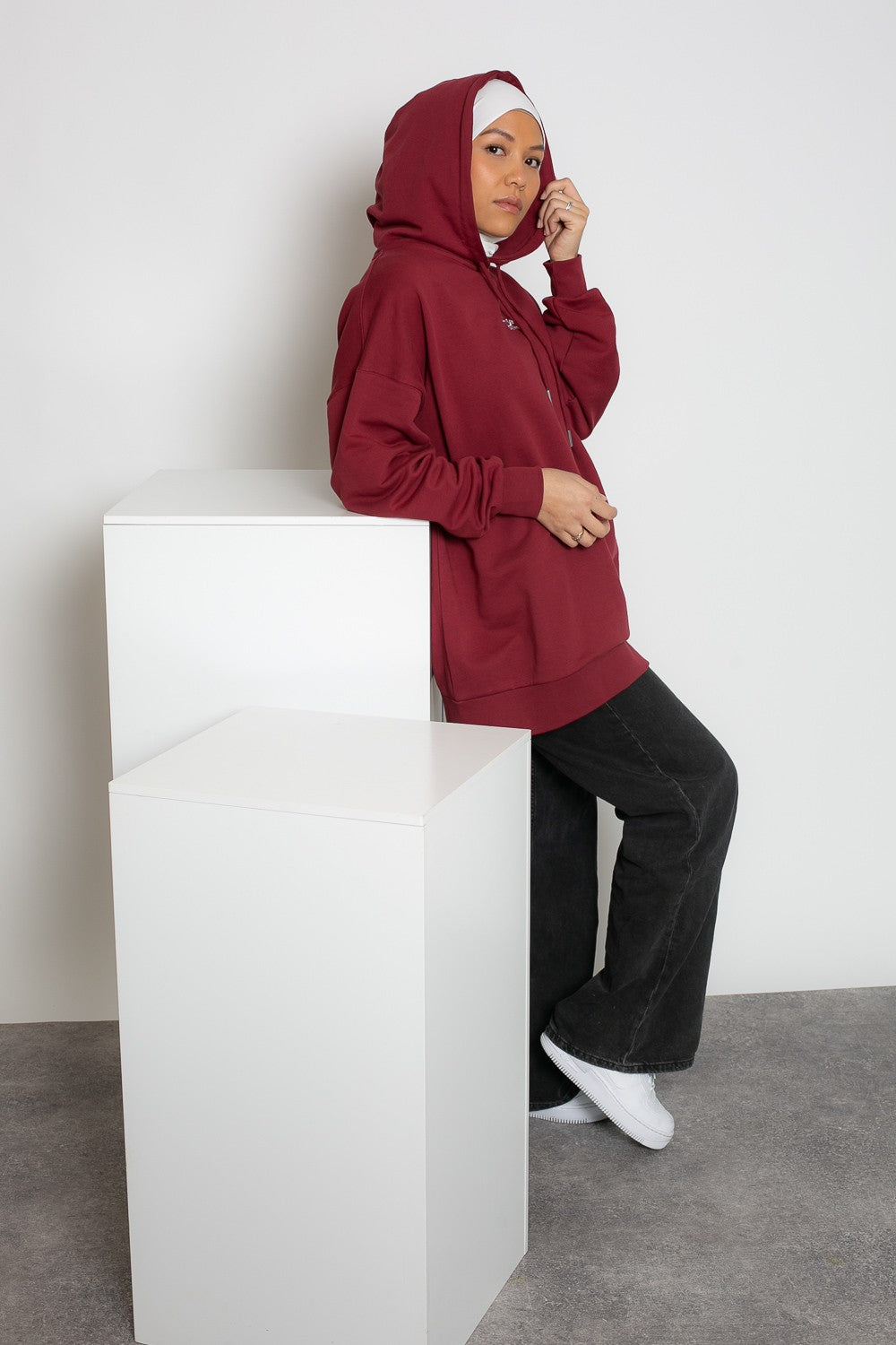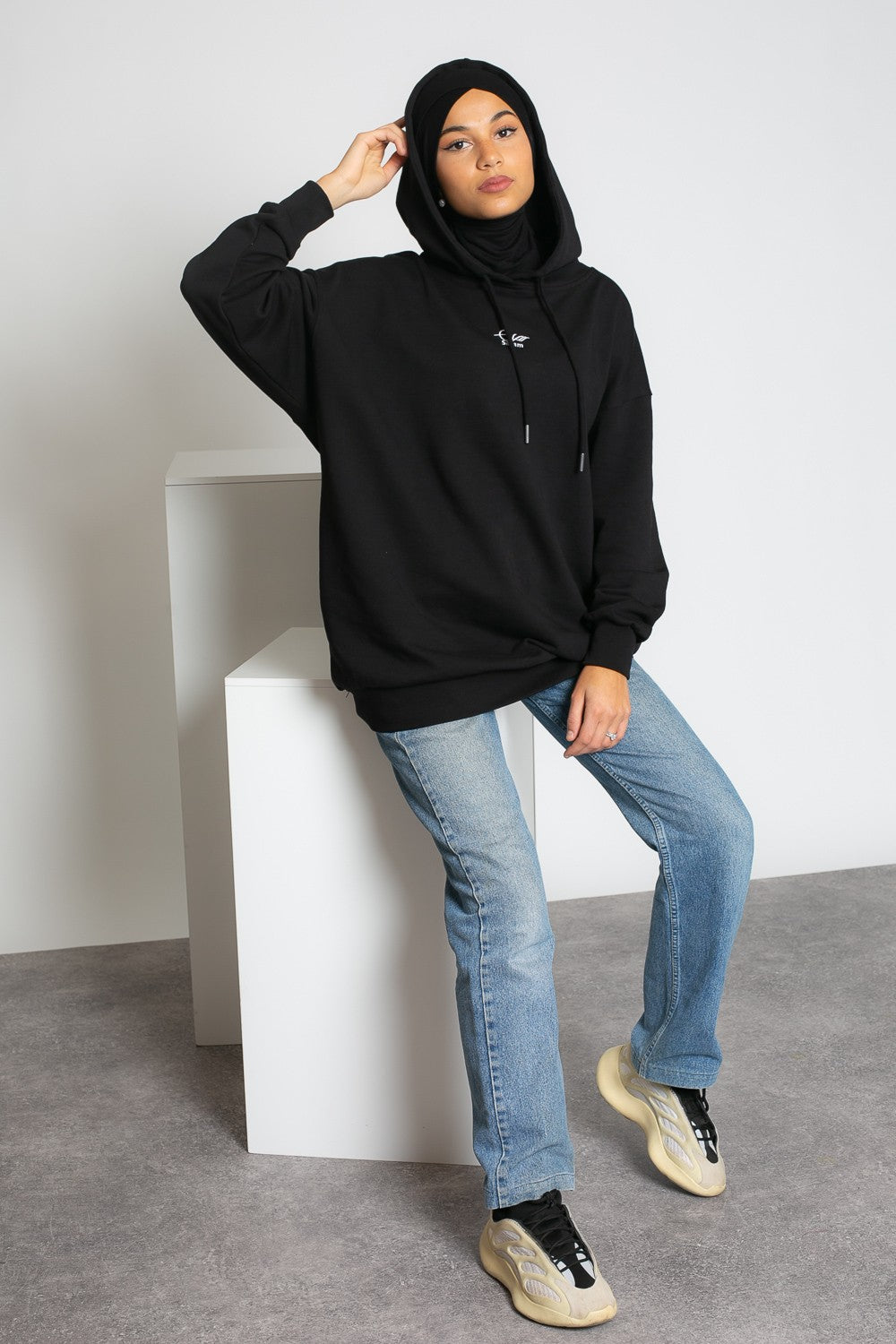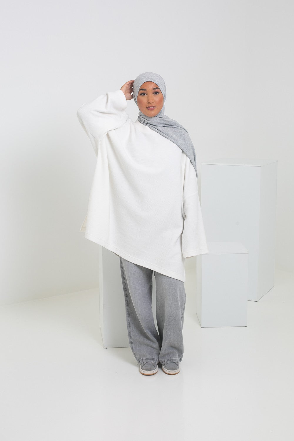 Le pull se marie parfaitement avec un pantalon droit, un jean ou une jupe. Il se porte aussi très bien par-dessus une robe ou une abaya, apportant une touche tendance tout en respectant votre style vestimentaire. Optez pour des coupes oversize ou loose pour un look moderne et confortable. Si vous préférez un style sportswear, découvrez nos sweats longs, avec ou sans capuche, disponibles en modèles à manches ballons, larges et amples.