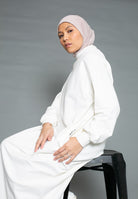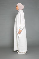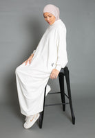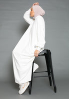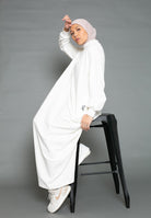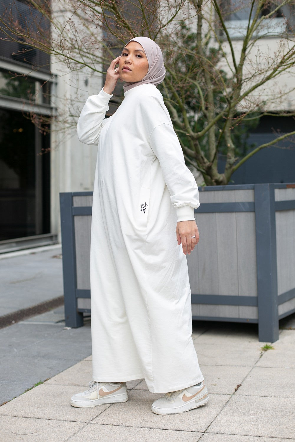 Vous pouvez porter cette abaya avec quasiment tous les hijabs, jersey softpremium sandy jersey et coton pour un style casual au quotidien. Enfin pour finaliser ce look une bonne paires de basket sera le combo idéal.