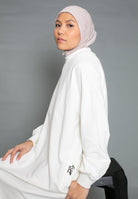 Pour ce outfit le modèle porte un hijab premium sandy jersey et une paire de basket.