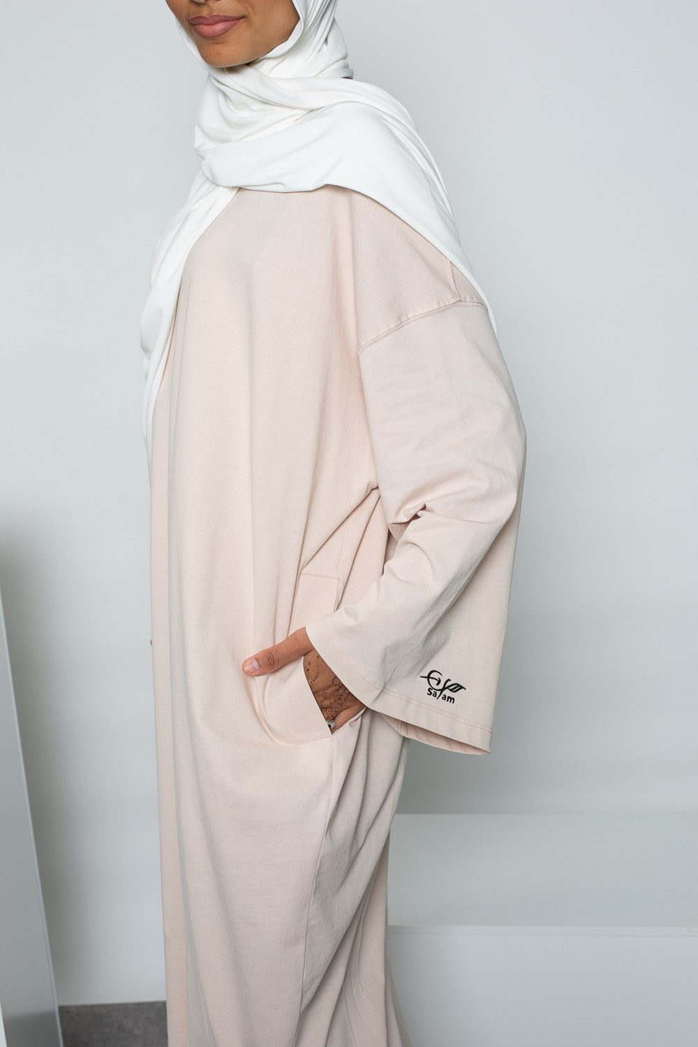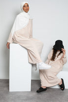 Vous pouvez porter cette abaya avec quasiment tous les hijabs, jersey soft, premium sandy jersey et coton pour un style casual au quotidien. Enfin pour finaliser ce look une bonne paires de basket sera le combo idéal.