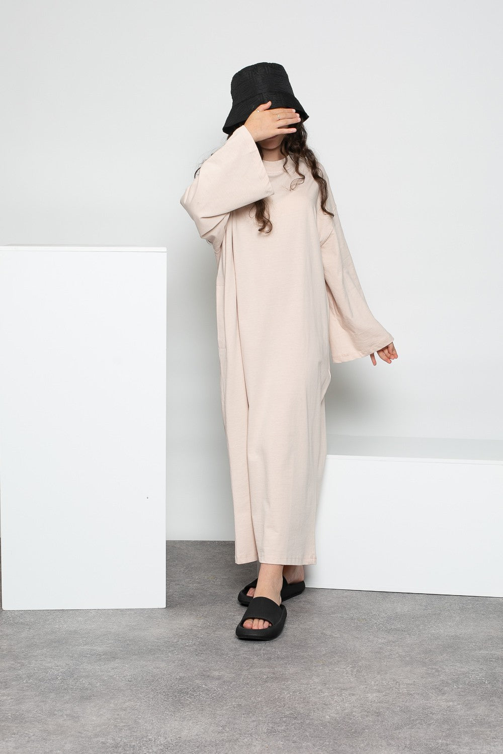 Robe teeshirt manche large nude