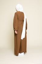 La tendance actuelle c'est du ton sur ton mais vous pouvez casser avec une autre couleurs, comme nous l'avons fait. Pour celles qui portent d'avantage le khimar vous pouvez porter cette robe longue ave un de nos khimars soie de Médine ou nos khimars double voile. Vous pouvez porter cette robe avec quasiment tous les hijabs, jersey soft, premium sandy jersey et coton pour un style casual au quotidien. Vous pouvez également porter un hijab soie de Médine ou un hijab en mousseline qui apportera une touche raffinée à votre tenue. Enfin pour finaliser ce look une bonne paires de basket sera le combo idéal pour votre quotidien mais vous pouvez porter une paire de chaussure habillée pour un rendu plus élancé et chic avec un beau hijab en soie de Médine pour plus d'allure.