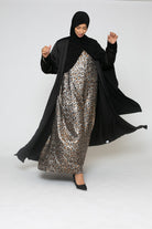 Découvrez l’élégance intemporelle de ce kimono long satiné noir, un modèle parfait pour sublimer votre style.