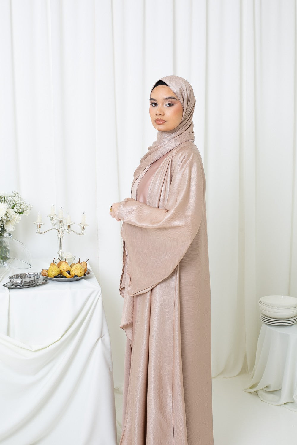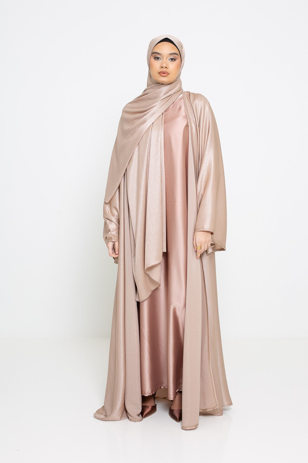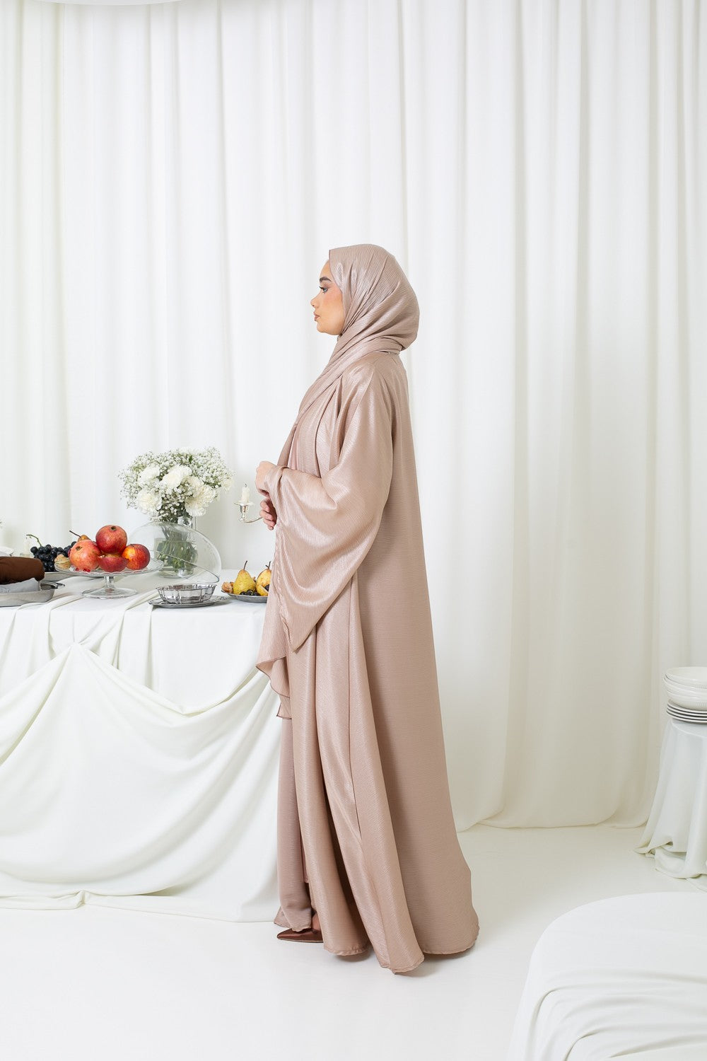 Découvrez notre collection exclusive de sets abaya, des ensembles élégants et raffinés composés d’une abaya fluide et d’un dessous de robe assorti. Certains modèles incluent un hijab coordonné et une ceinture élégante, offrant une silhouette harmonieuse et sophistiquée.