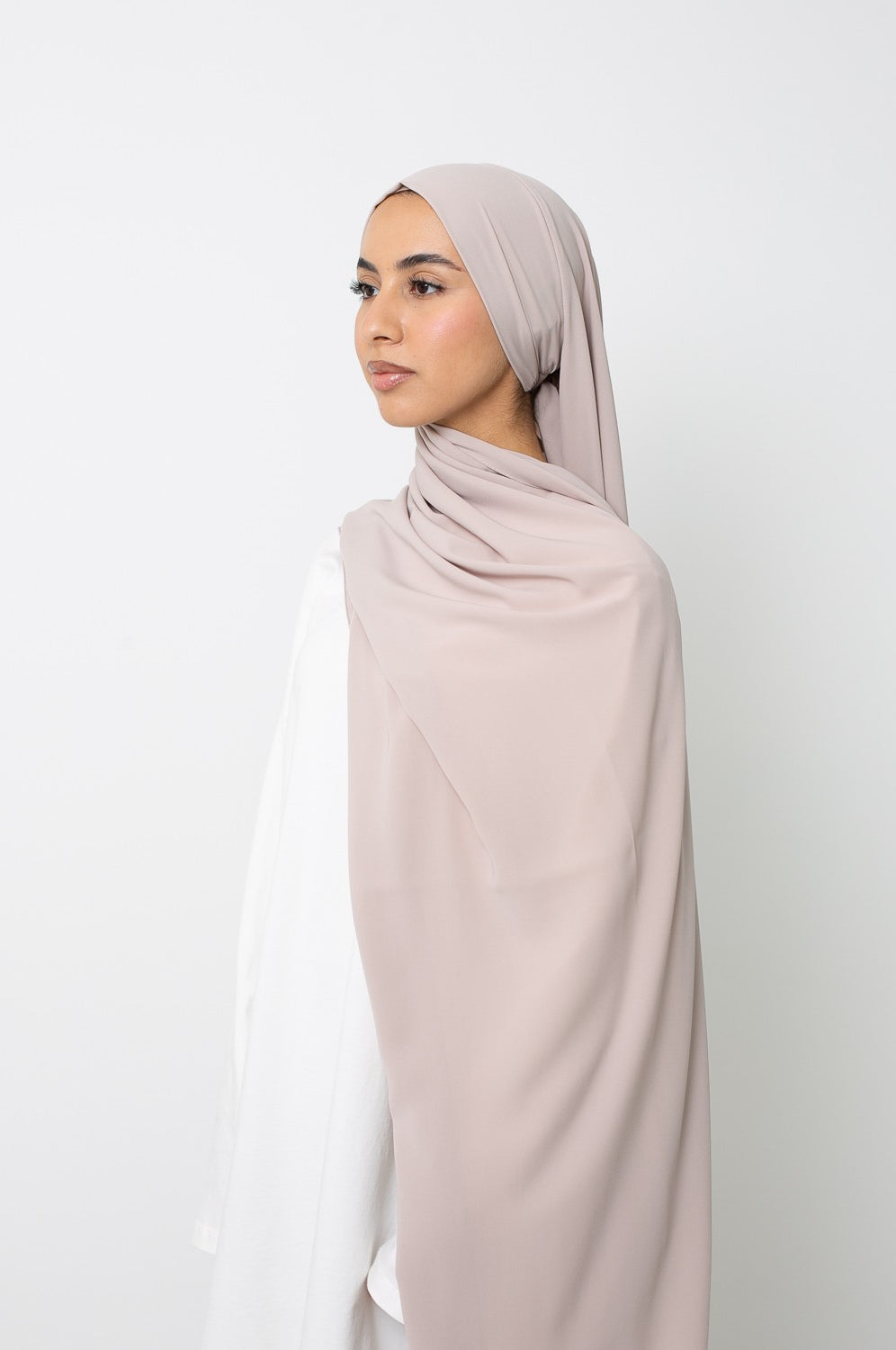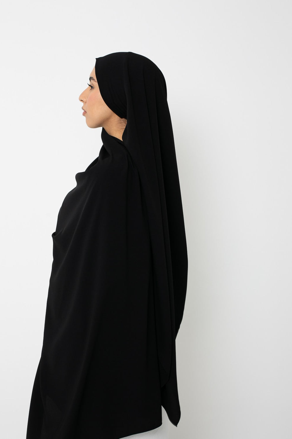 • Tissu premium : La soie de Médine égyptienne se distingue par sa douceur, sa fluidité et sa résistance. Elle ne glisse pas, garantissant un maintien parfait sans épingles excessives.
