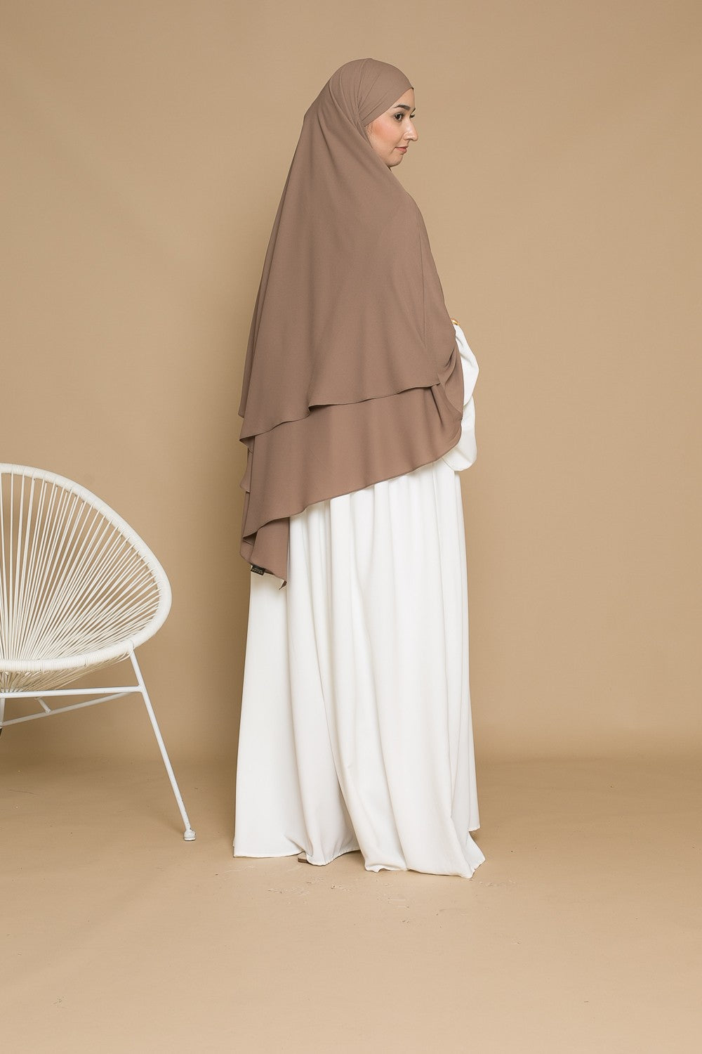 Khimar en luxe mousseline, conçut dans un magnifique tissu ultra fluide et léger. Opaque. Fabrication en Turquie.