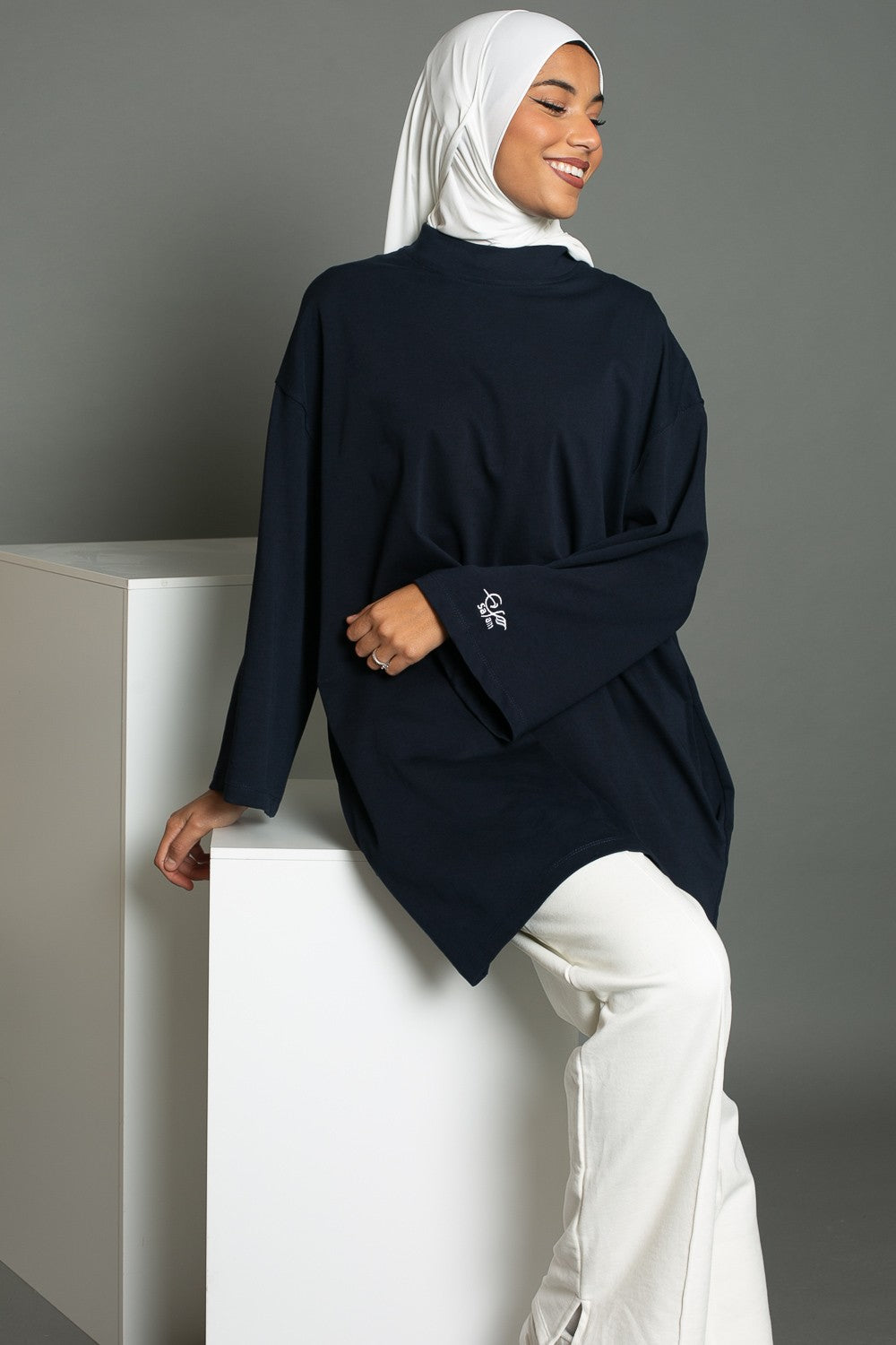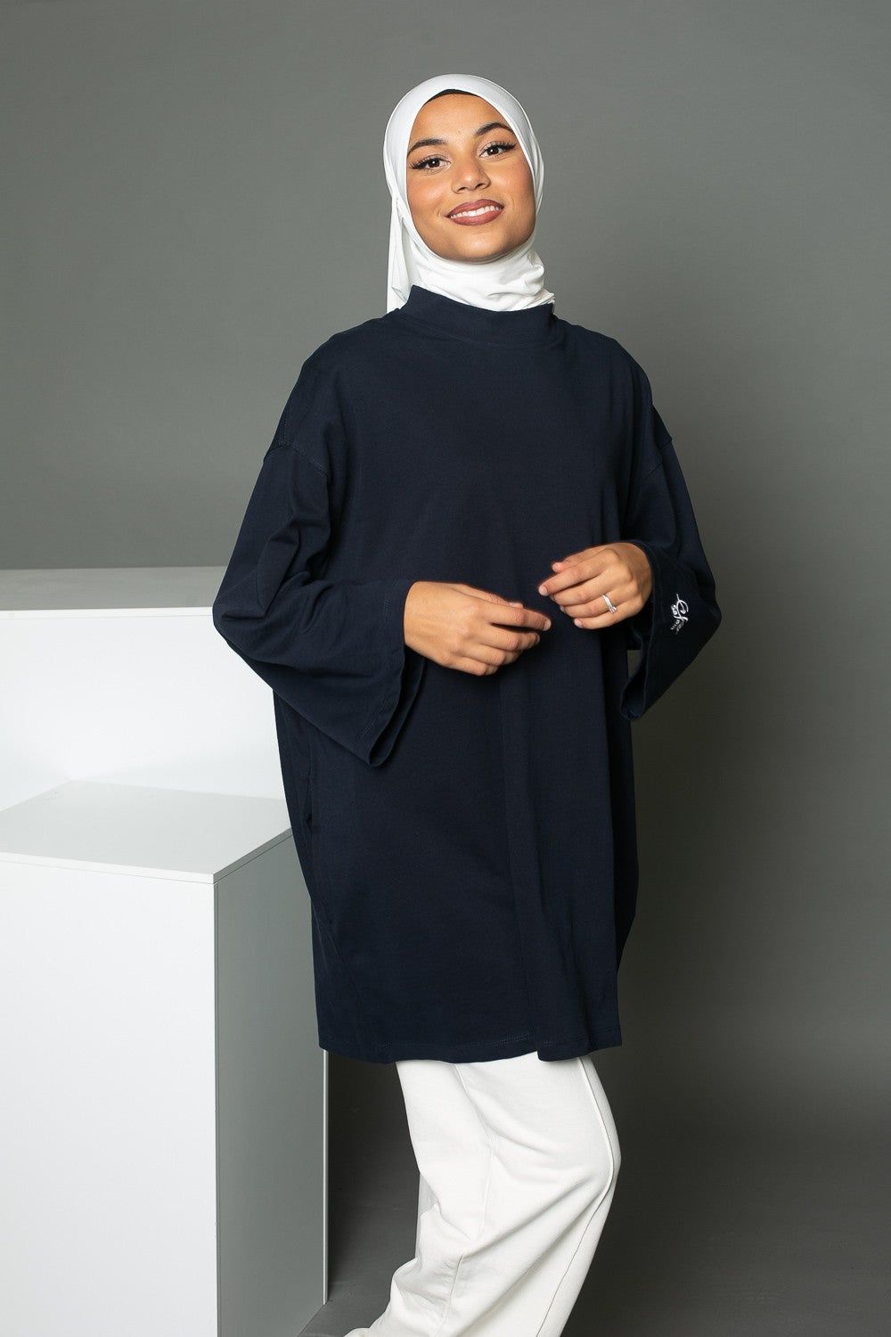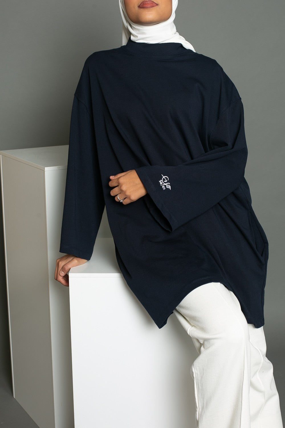 La grande tendance du moment c'est le oversize et tant mieux car c'est ce que recherche la femme modeste. La marque Salam vous propose ce magnifique tee shirt super oversize pour femme. Un incontournable du dressing de la femme musulmane pour son quotidiens. Coupe oversize, manches longue larges, col rond haut, poches, broderie Salam sur la manche gauche. Le tissu, de haute qualité est fabriqué en Turquie. La marque Salam a choisit pour vous les meilleurs tissu en terme de confort et de résistance. Le coton est connu pour ses propriétés absorbantes ce qui est idéal pour vos activités sportives mais également lors des saisons chaudes. Vous pourrez porter ce maxi tee shirt toute l'année.